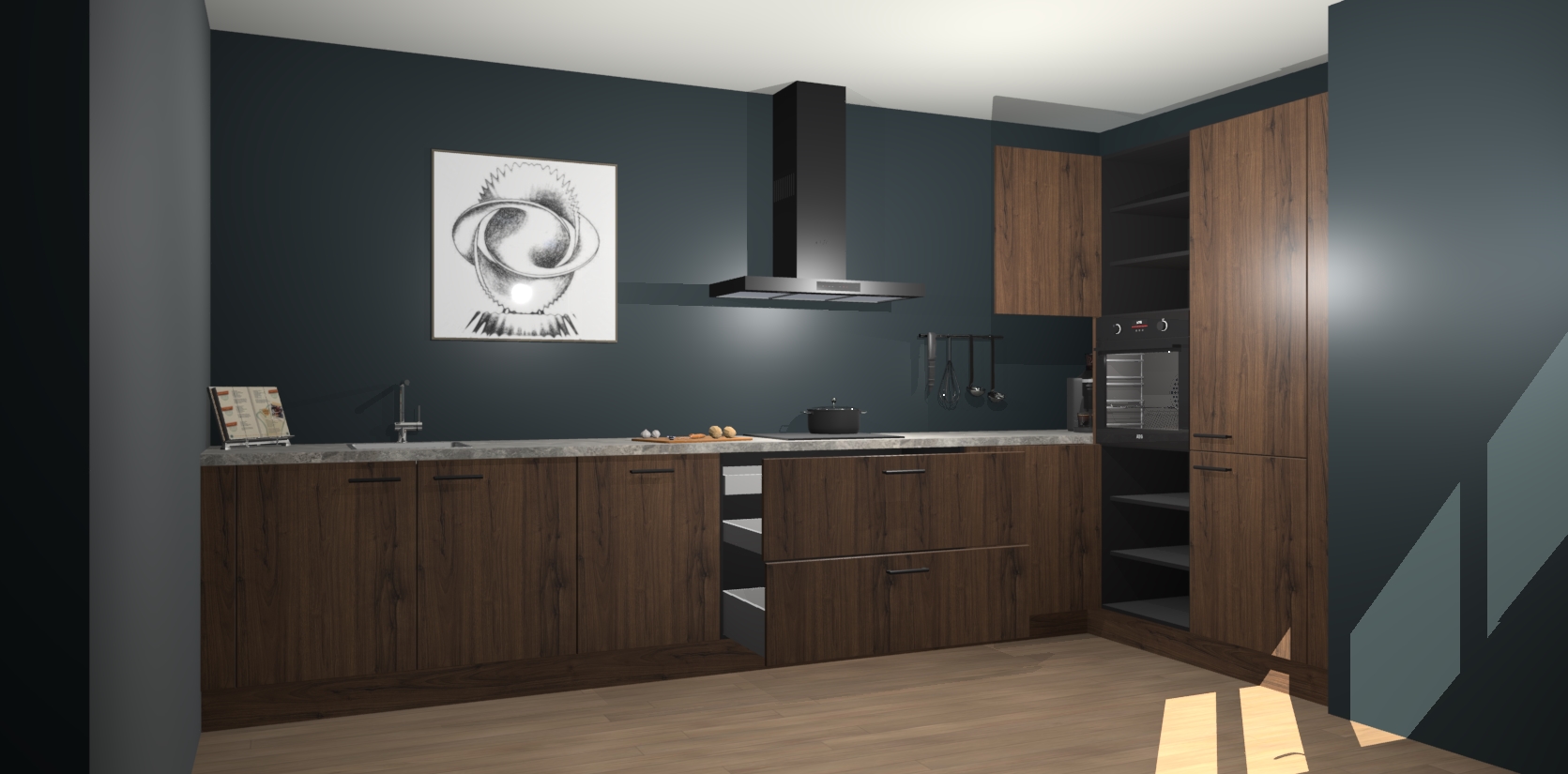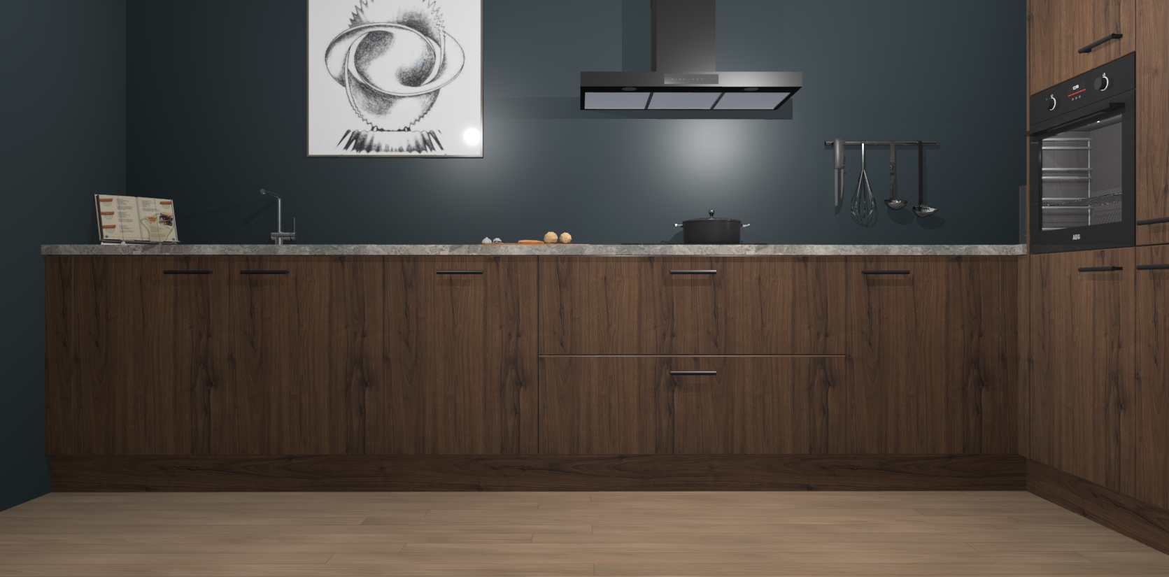 Welkom bij de Noten keuken Khao Lak. Deze prachtige keuken zal de komende jaren het middelpunt van de belangstelling in uw huis zijn. Uitgerust met vijf inbouwapparaten komt u nooit kookgereedschap tekort. Bovendien geeft de warme houtlook elke ruimte een uitnodigende en tijdloze uitstraling.