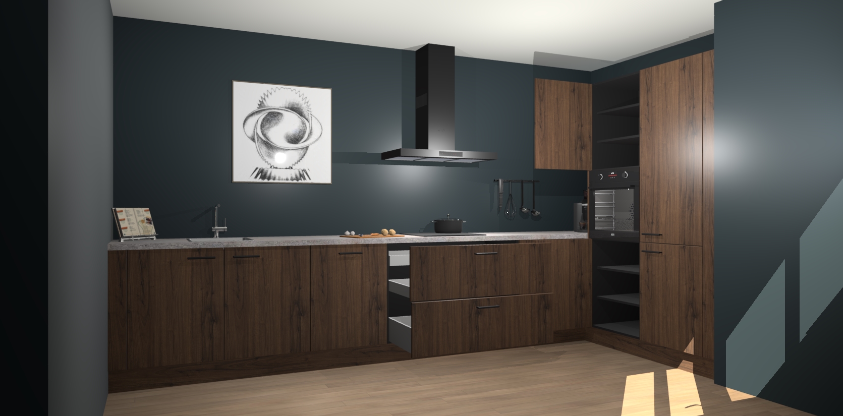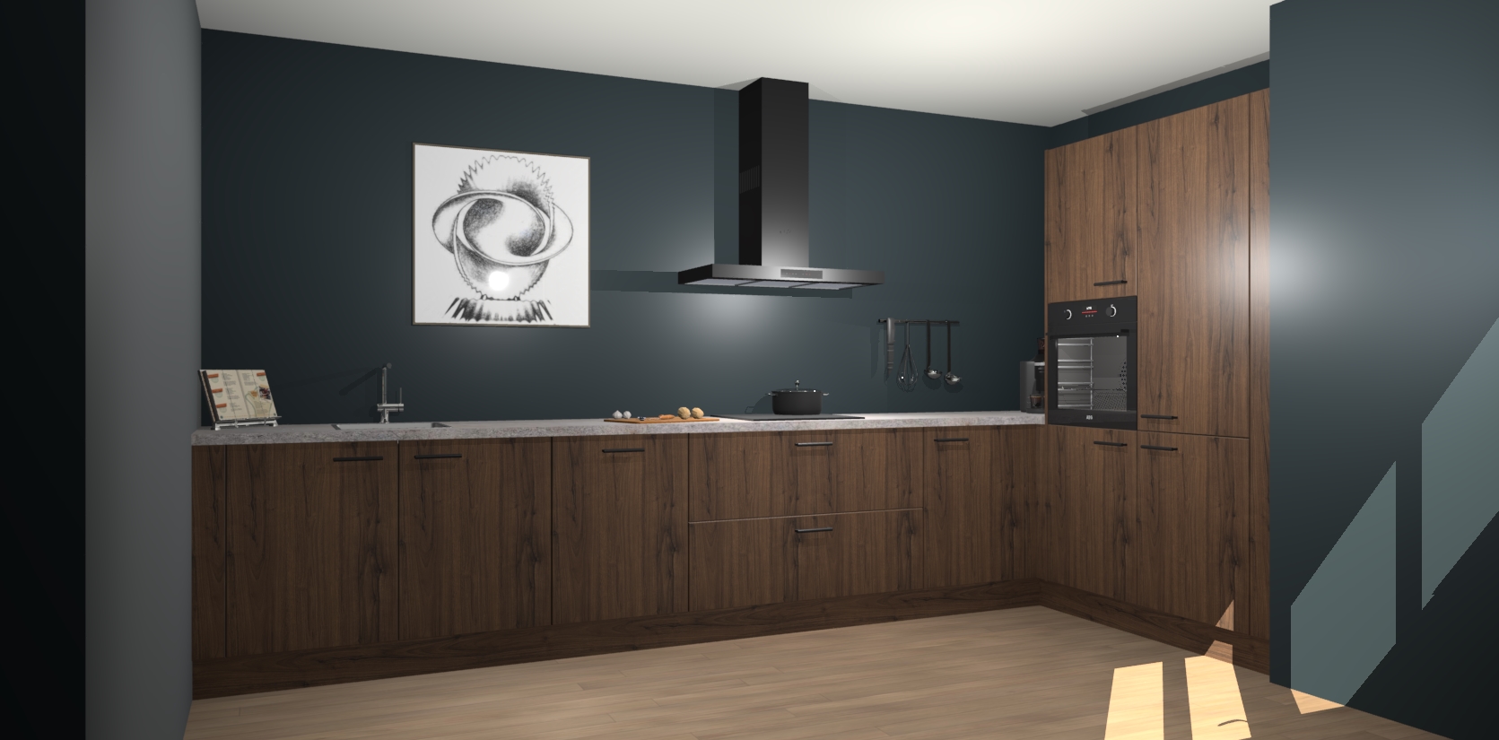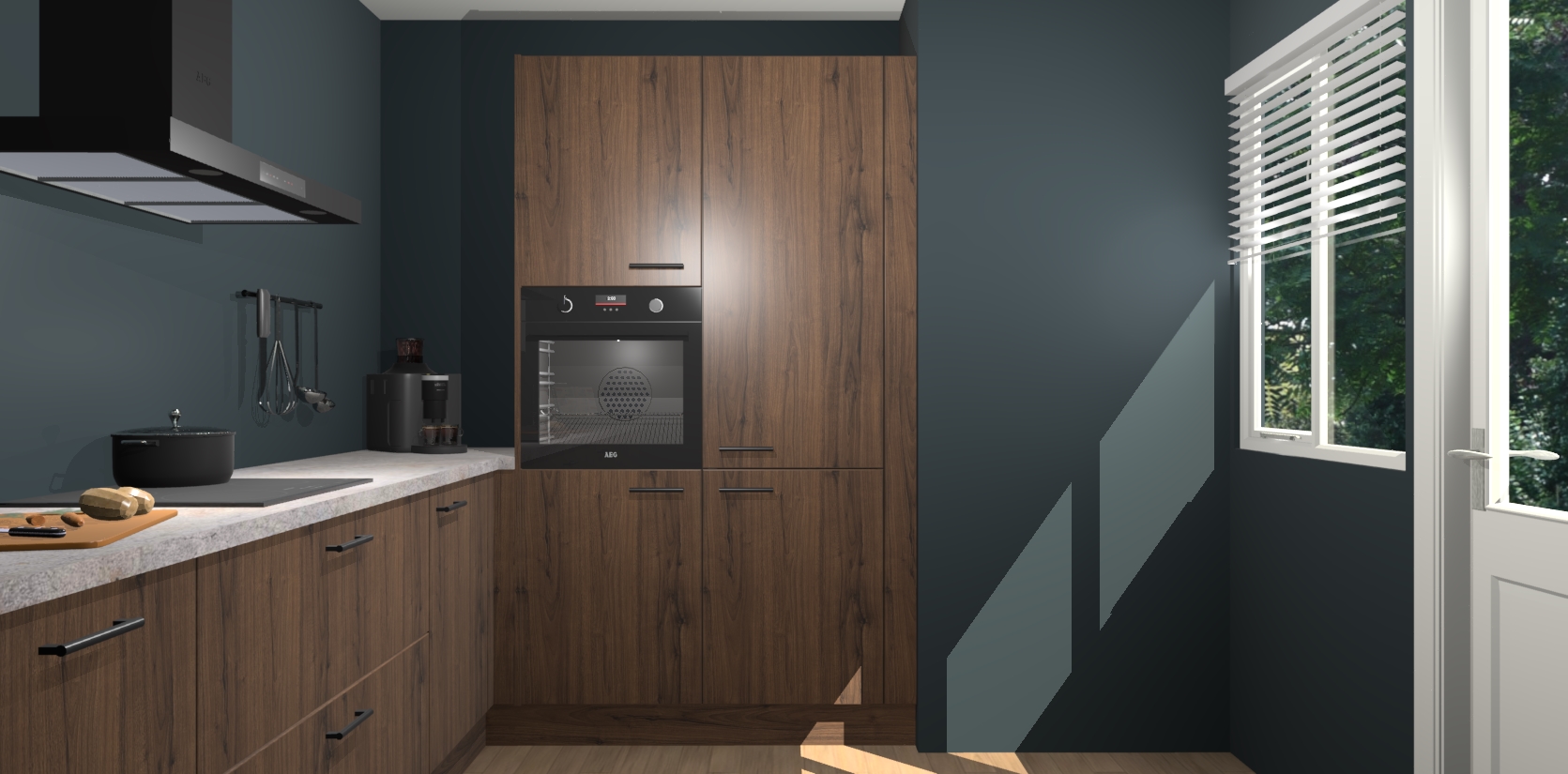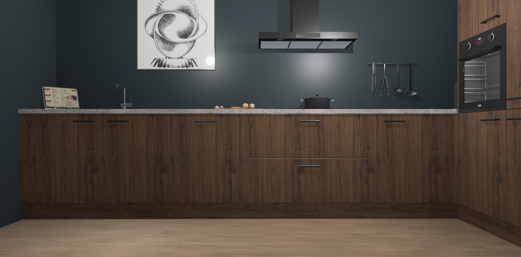 Welkom bij de Noten keuken Khao Lak. Deze prachtige keuken zal de komende jaren het middelpunt van de belangstelling in uw huis zijn. Uitgerust met vijf inbouwapparaten komt u nooit kookgereedschap tekort. Bovendien geeft de warme houtlook elke ruimte een uitnodigende en tijdloze uitstraling.