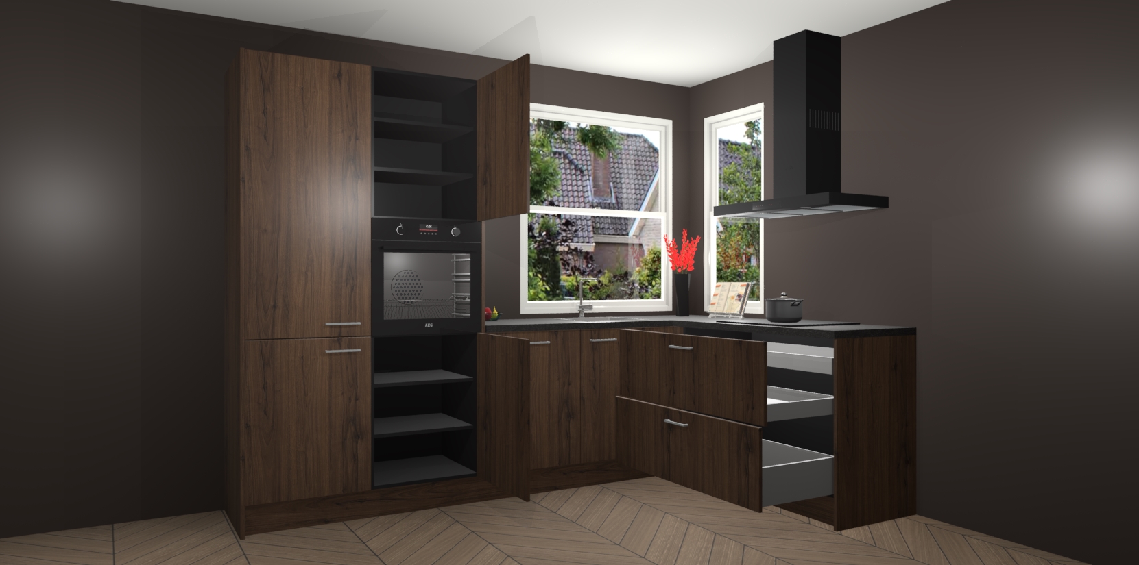 Het is tijd om halsoverkop verliefd te worden op uw droomkeuken, en de Noten keuken Kotor is precies wat u nodig heeft! Met een moderne, tijdloze constructie en een mix van prachtig design zal deze luxe hoekkeuken zeker opvallen. Maar laat de schoonheid u niet afleiden van de indrukwekkende functies - want onder dit alles schuilt een onovertroffen hoeveelheid lekkers!