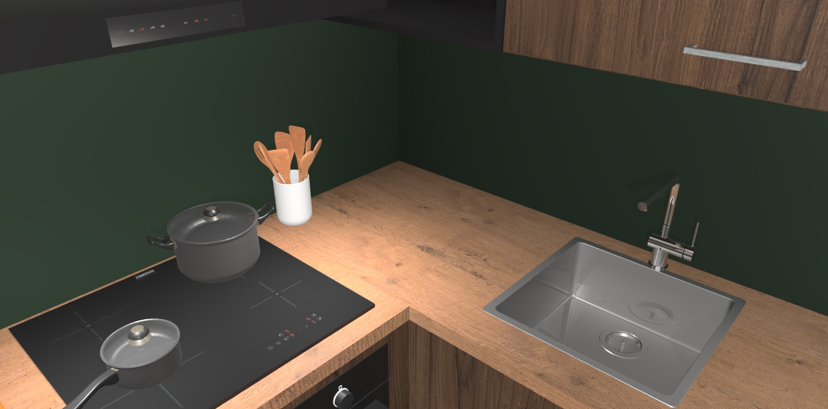 - Uitsparing van kookplaat, spoelbak en kraan dient u zelf te verzorgen.