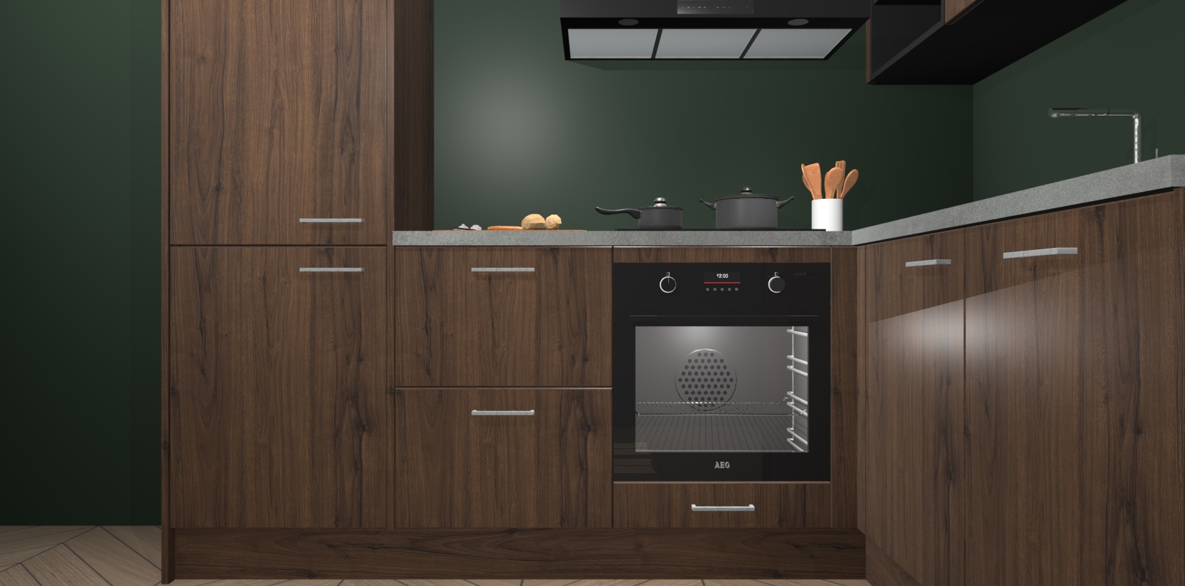 Dit model biedt u voldoende opbergruimte en vijf ingebouwde apparaten: een oven, inductiekookplaat, afzuigkap, vaatwasser en koelkast. Deze apparaten kunnen gemakkelijk worden geüpgrade naar AEG nadat u besteld heeft. De verschillende laden en kastjes bevatten softclose-deuren waardoor ze gezellig dichtvallen met een geruststellend helemaal geruisloos geluid. En dat is nog niet alles! We garanderen ook dat de prijs altijd laag blijft - dus haal nu uw Noten keuken Krakau terwijl het kan.