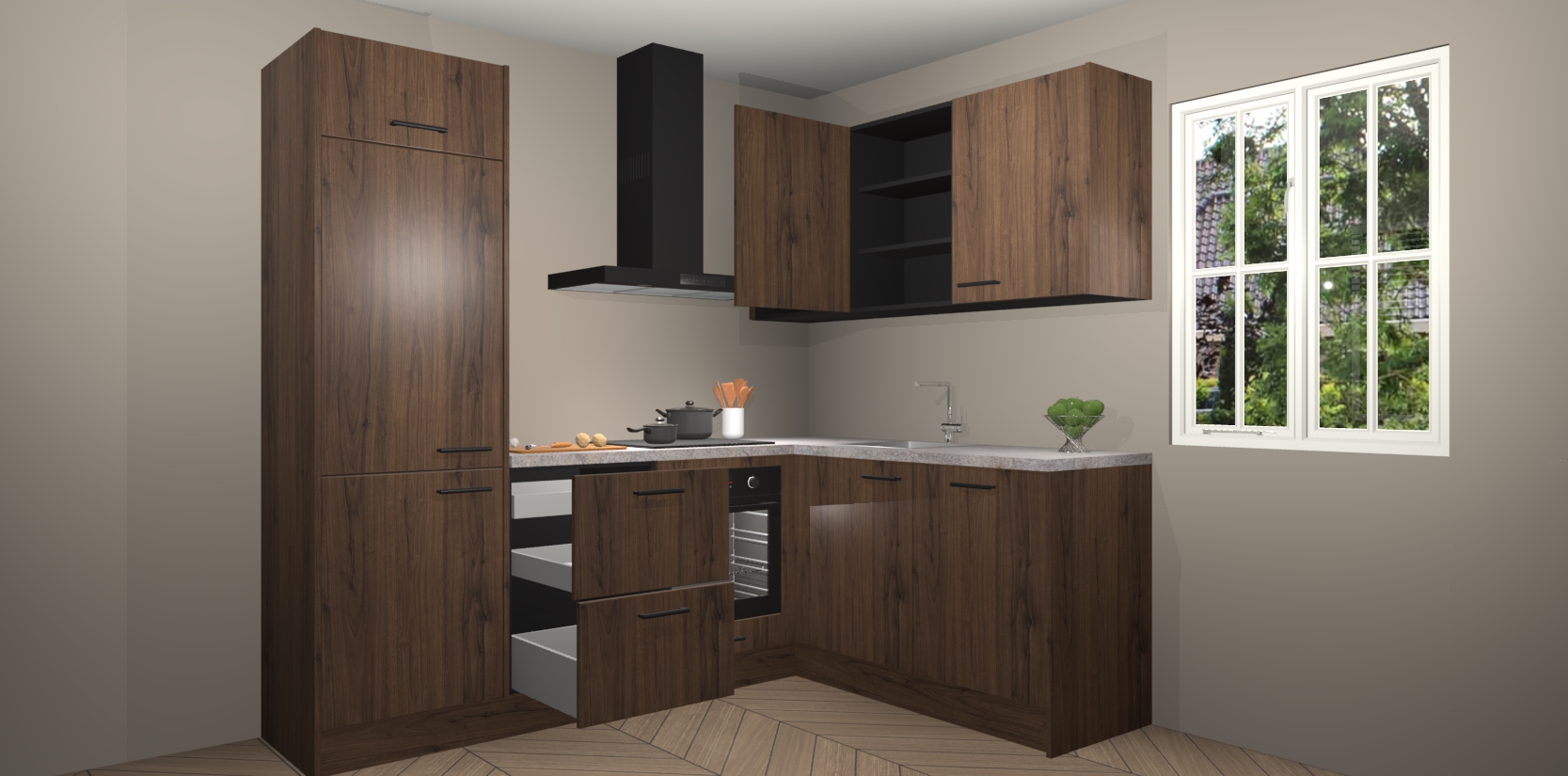 Bestellen was nog nooit zo makkelijk en we leveren met slechts 7 weken; zodra de keuken arriveert staan de kasten voor gemonteerd klaar om er alles aan te doen dat u hem gemakkelijk zelf kunt installeren! Eén ding is zeker: met de Noten keuken Krakau slaagt u erin modischer, modernere keukens uit te rusten die tientallen jaren meegaan! Haal snel uw Noten keuken Krakau - of u nu net begint of al 'levenservaring' hebt in de keukendroomloopbaan - want dit topmodel van onze collectie wilt u absoluut niet missen.
