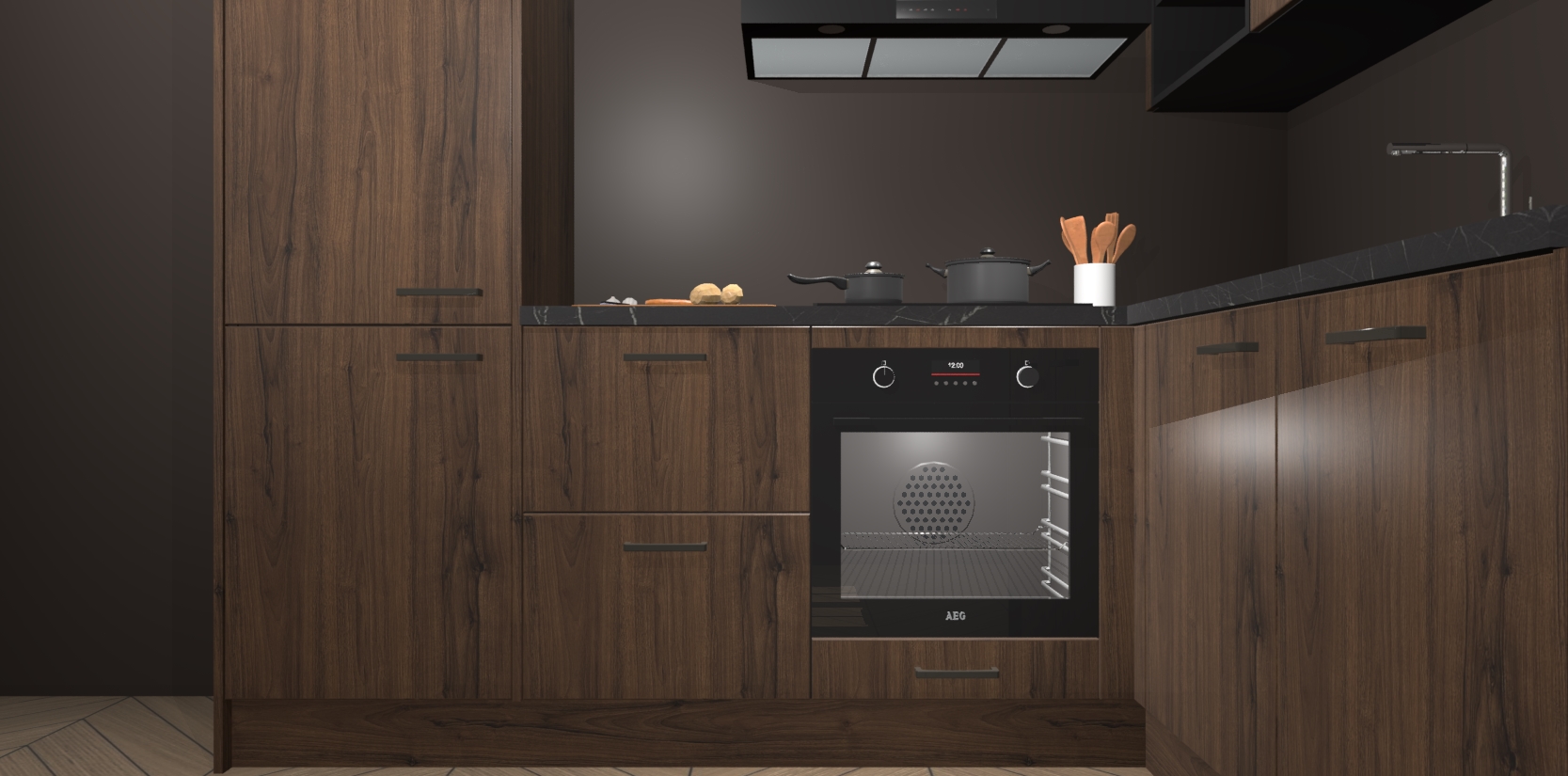 Dit model biedt u voldoende opbergruimte en vijf ingebouwde apparaten: een oven, inductiekookplaat, afzuigkap, vaatwasser en koelkast. Deze apparaten kunnen gemakkelijk worden geüpgrade naar AEG nadat u besteld heeft. De verschillende laden en kastjes bevatten softclose-deuren waardoor ze gezellig dichtvallen met een geruststellend helemaal geruisloos geluid. En dat is nog niet alles! We garanderen ook dat de prijs altijd laag blijft - dus haal nu uw Noten  keuken Krakau terwijl het kan.