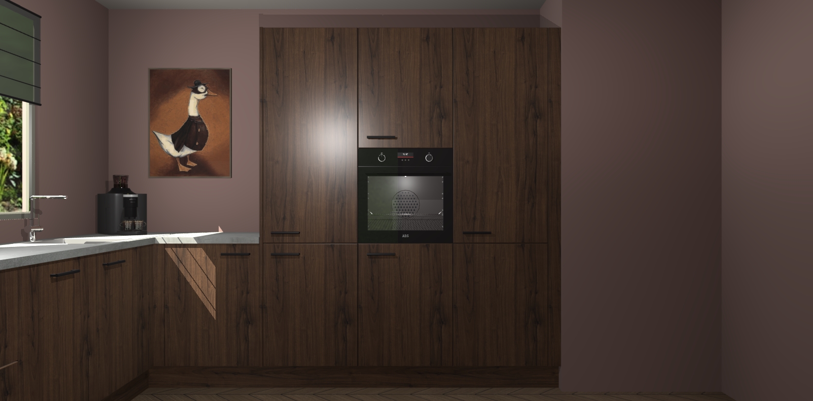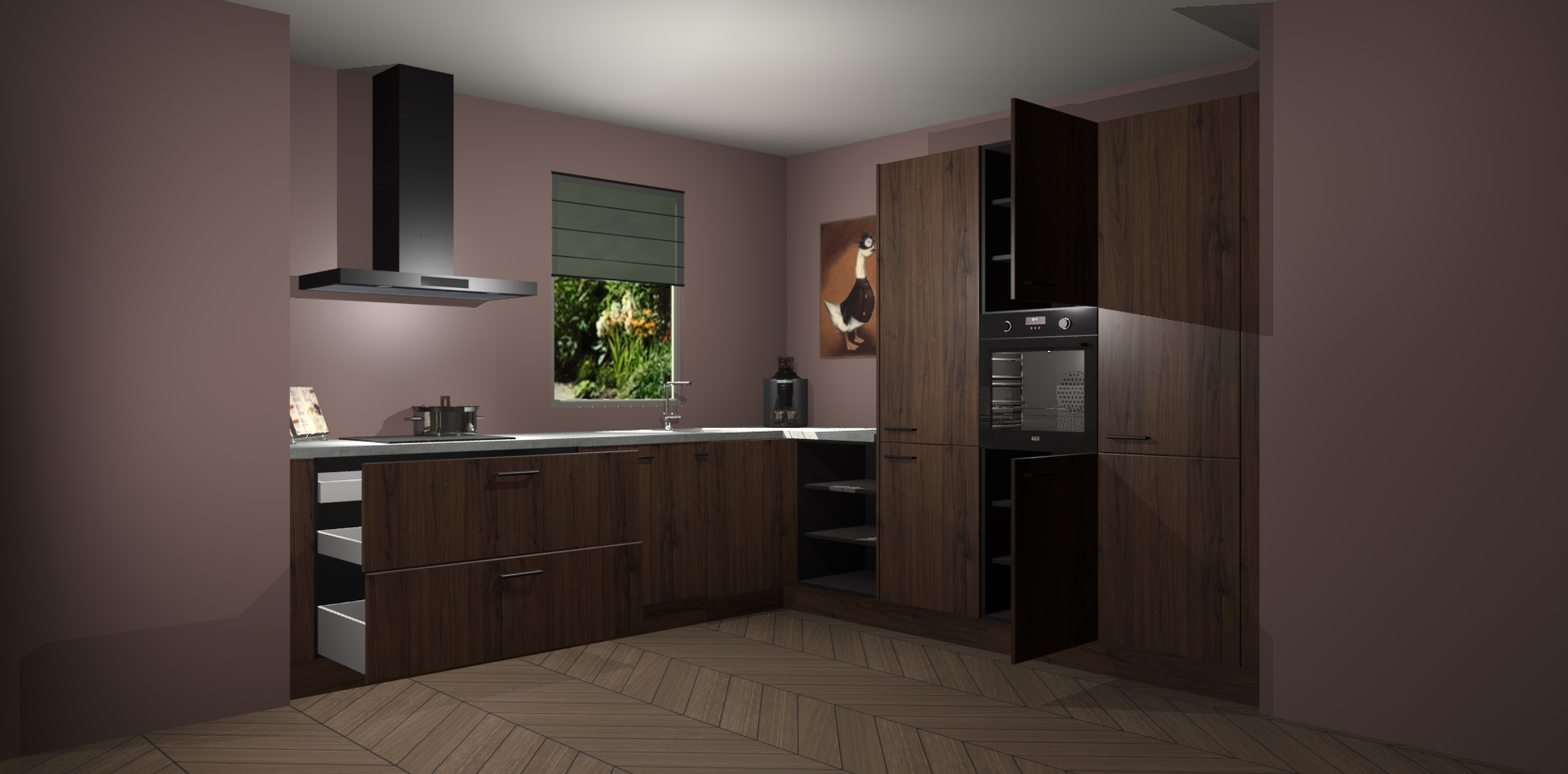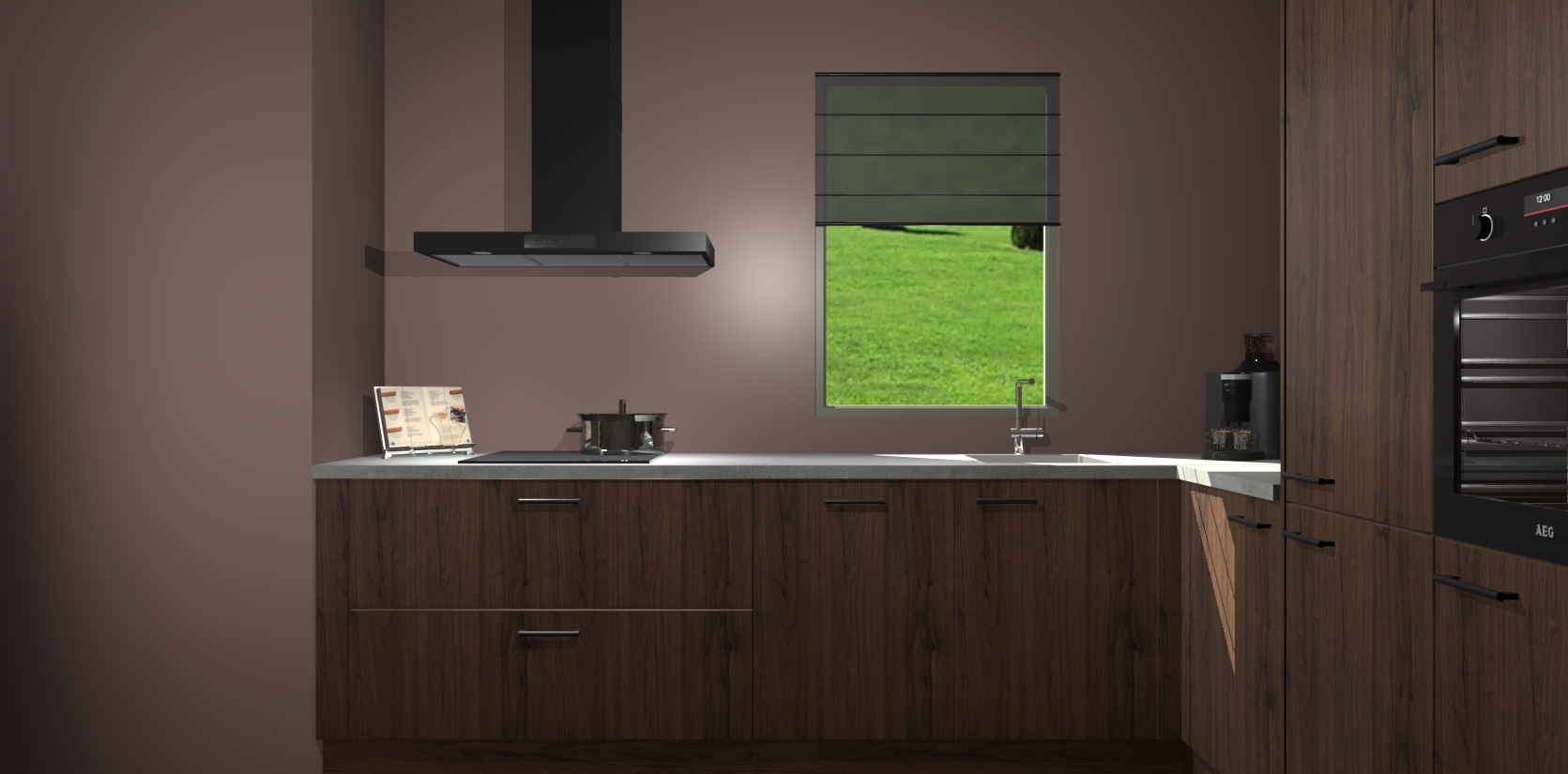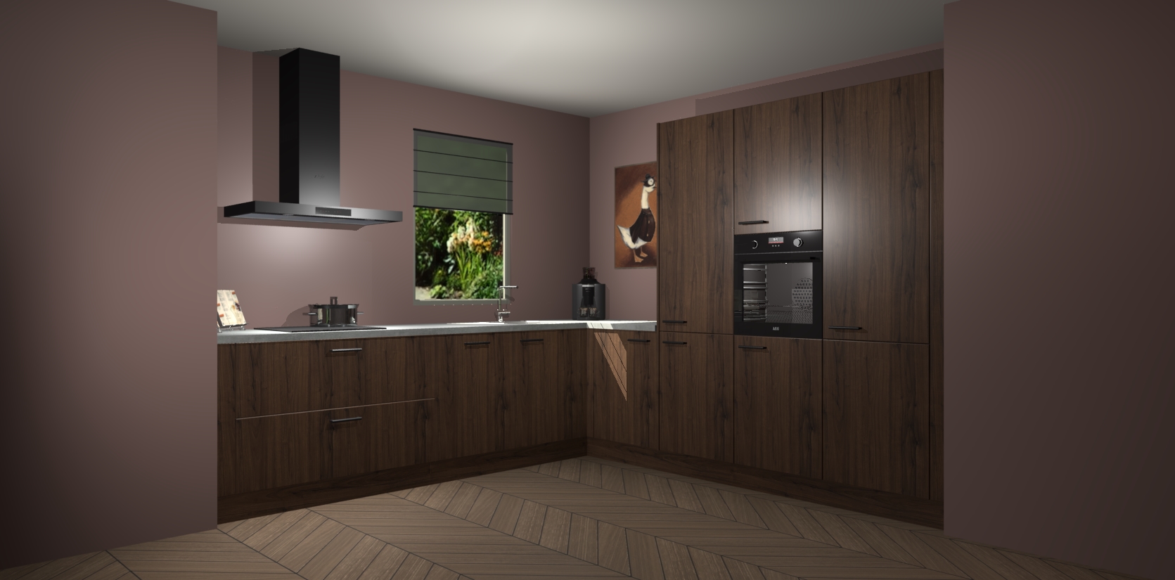 Welkom bij de Noten keuken Laos. Deze prachtige keuken zal de komende jaren het middelpunt van de belangstelling in uw huis zijn. Uitgerust met vijf inbouwapparaten komt u nooit kookgereedschap tekort. Bovendien geeft de warme houtlook elke ruimte een uitnodigende en tijdloze uitstraling.