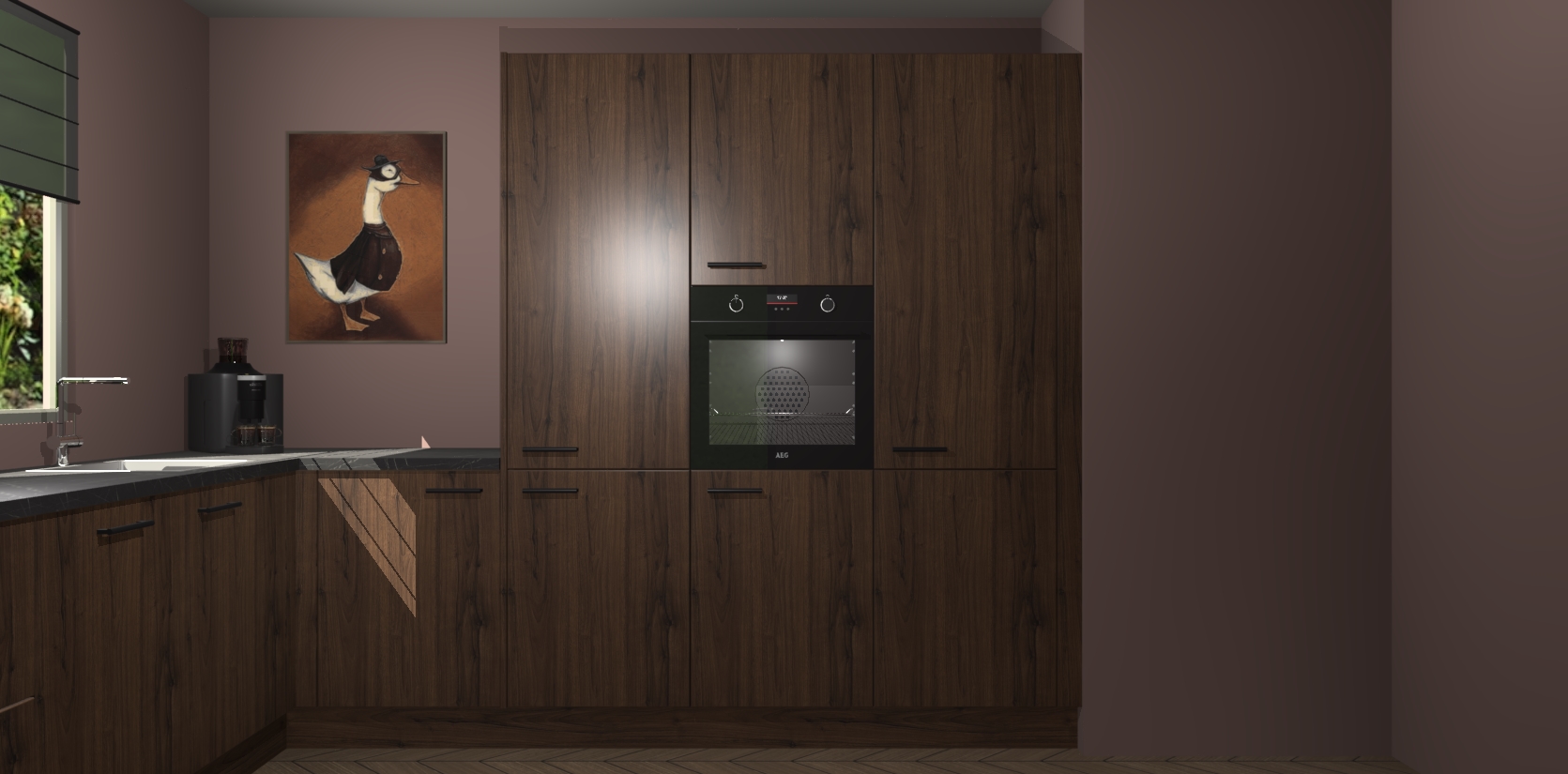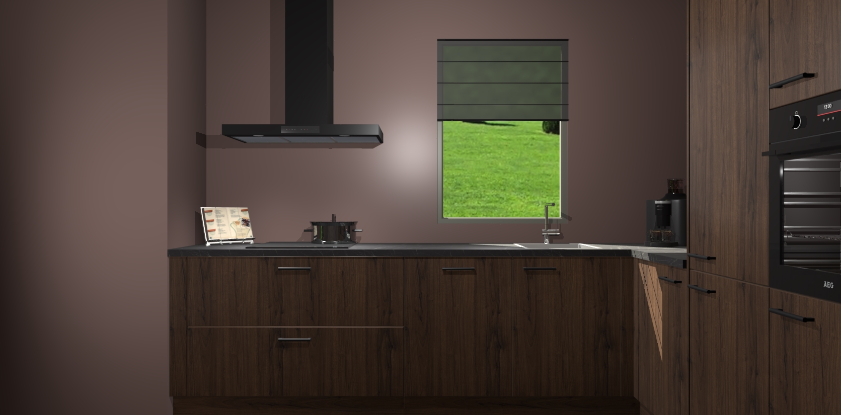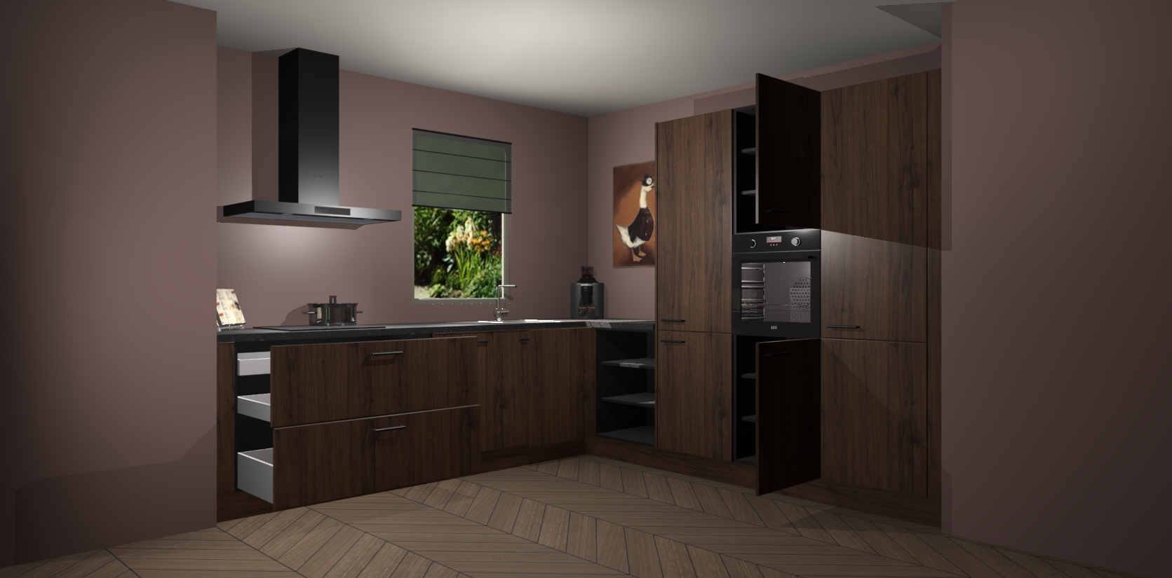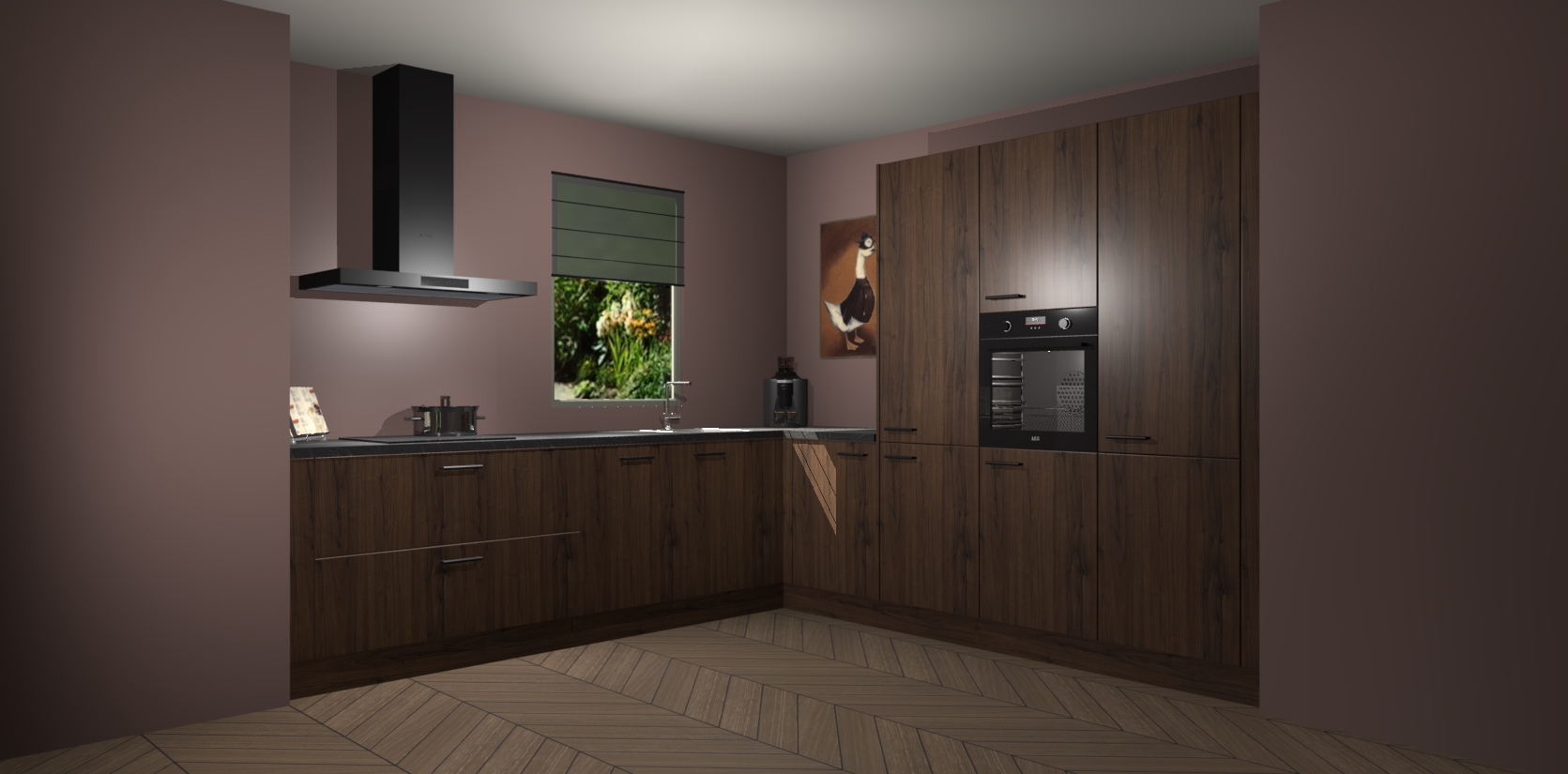 Welkom bij de Noten keuken Laos. Deze prachtige keuken zal de komende jaren het middelpunt van de belangstelling in uw huis zijn. Uitgerust met vijf inbouwapparaten komt u nooit kookgereedschap tekort. Bovendien geeft de warme houtlook elke ruimte een uitnodigende en tijdloze uitstraling.