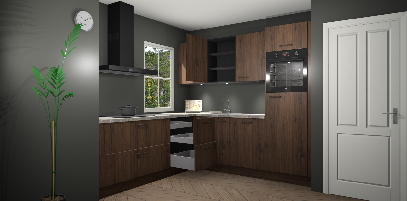 De noten keuken Leeds bevat vijf essentiële inbouwapparaten - een oven, inductiekookplaat, afzuigkap, vaatwasser en koelkast - zodat u er na levering meteen in kunt. Voor de slimme kopers die weten dat apparaten vaak het verschil kunnen maken tussen functioneel en luxueus, bieden we eenvoudige upgradeopties naar AEG, van oven naar combimagnetron na bestelling of naar een kookplaat met geïntrigeerde afzuiging. En met onze vaste lage prijs en snelle levering binnen zeven weken vanaf de orderbevestiging hoeft u zich geen zorgen te maken over verborgen kosten of lange levertijden die uw droomkeuken kunnen vertragen.