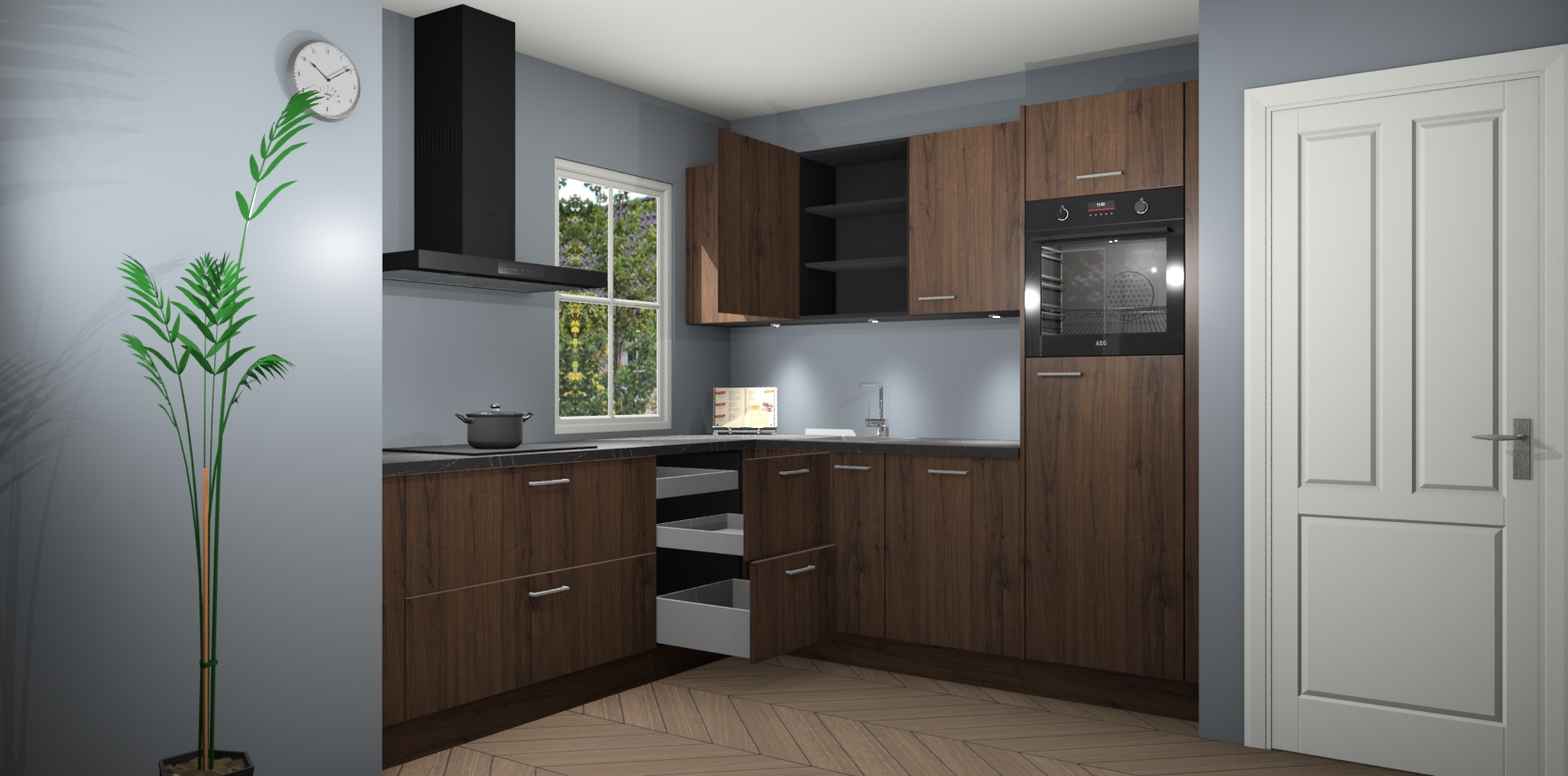 De noten keuken Leeds bevat vijf essentiële inbouwapparaten - een oven, inductiekookplaat, afzuigkap, vaatwasser en koelkast - zodat u er na levering meteen in kunt. Voor de slimme kopers die weten dat apparaten vaak het verschil kunnen maken tussen functioneel en luxueus, bieden we eenvoudige upgradeopties naar AEG, van oven naar combimagnetron na bestelling of naar een kookplaat met geïntrigeerde afzuiging. En met onze vaste lage prijs en snelle levering binnen zeven weken vanaf de orderbevestiging hoeft u zich geen zorgen te maken over verborgen kosten of lange levertijden die uw droomkeuken kunnen vertragen.