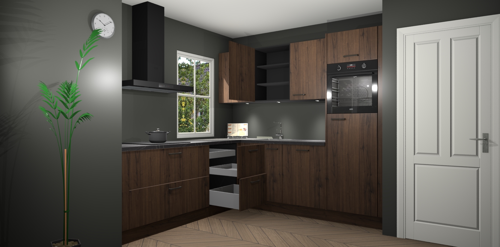 De noten keuken Leeds bevat vijf essentiële inbouwapparaten - een oven, inductiekookplaat, afzuigkap, vaatwasser en koelkast - zodat u er na levering meteen in kunt. Voor de slimme kopers die weten dat apparaten vaak het verschil kunnen maken tussen functioneel en luxueus, bieden we eenvoudige upgradeopties naar AEG, van oven naar combimagnetron na bestelling of naar een kookplaat met geïntrigeerde afzuiging. En met onze vaste lage prijs en snelle levering binnen zeven weken vanaf de orderbevestiging hoeft u zich geen zorgen te maken over verborgen kosten of lange levertijden die uw droomkeuken kunnen vertragen.