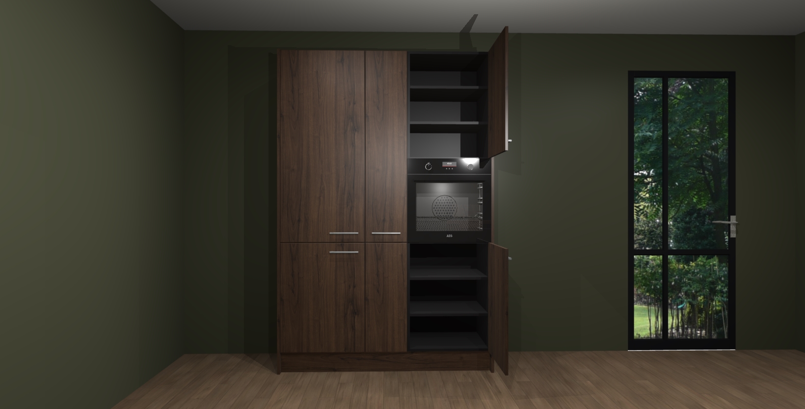 Met een modern, tijdloos design en ruime opslagruimte, zult u zich in no-time thuis voelen in uw nieuwe keuken. Uw leven wordt eenvoudiger met de soft-close deuren die voor het ultieme stille comfort zorgen - geen geluid dat u stoort terwijl u kookt. Ook is de keuken voorzien van 5 ingebouwde apparaten: een oven, inductie kookplaat, afzuigkap, vaatwasser en koelkast. Deze kunnen gemakkelijk na bestelling worden bijgewerkt naar AEG - waardoor uw luxe ervaring compleet is.