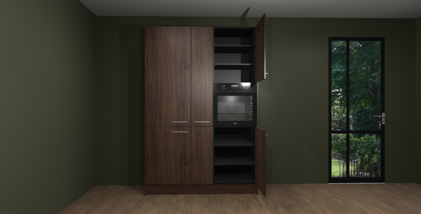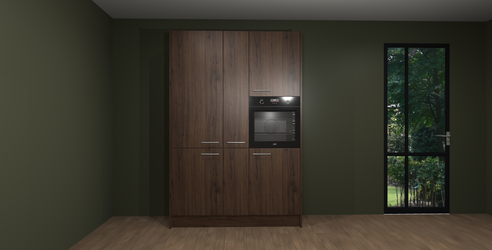 Met een modern, tijdloos design en ruime opslagruimte, zult u zich in no-time thuis voelen in uw nieuwe keuken. Uw leven wordt eenvoudiger met de soft-close deuren die voor het ultieme stille comfort zorgen - geen geluid dat u stoort terwijl u kookt. Ook is de keuken voorzien van 5 ingebouwde apparaten: een oven, inductie kookplaat, afzuigkap, vaatwasser en koelkast. Deze kunnen gemakkelijk na bestelling worden bijgewerkt naar AEG - waardoor uw luxe ervaring compleet is.