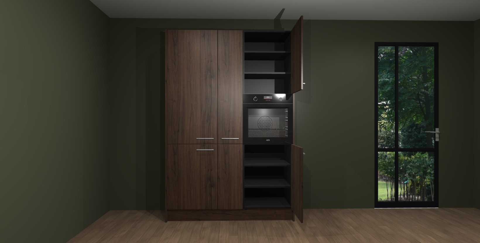 Met een modern, tijdloos design en ruime opslagruimte, zult u zich in no-time thuis voelen in uw nieuwe keuken. Uw leven wordt eenvoudiger met de soft-close deuren die voor het ultieme stille comfort zorgen - geen geluid dat u stoort terwijl u kookt. Ook is de keuken voorzien van 5 ingebouwde apparaten: een oven, inductie kookplaat, afzuigkap, vaatwasser en koelkast. Deze kunnen gemakkelijk na bestelling worden bijgewerkt naar AEG - waardoor uw luxe ervaring compleet is.