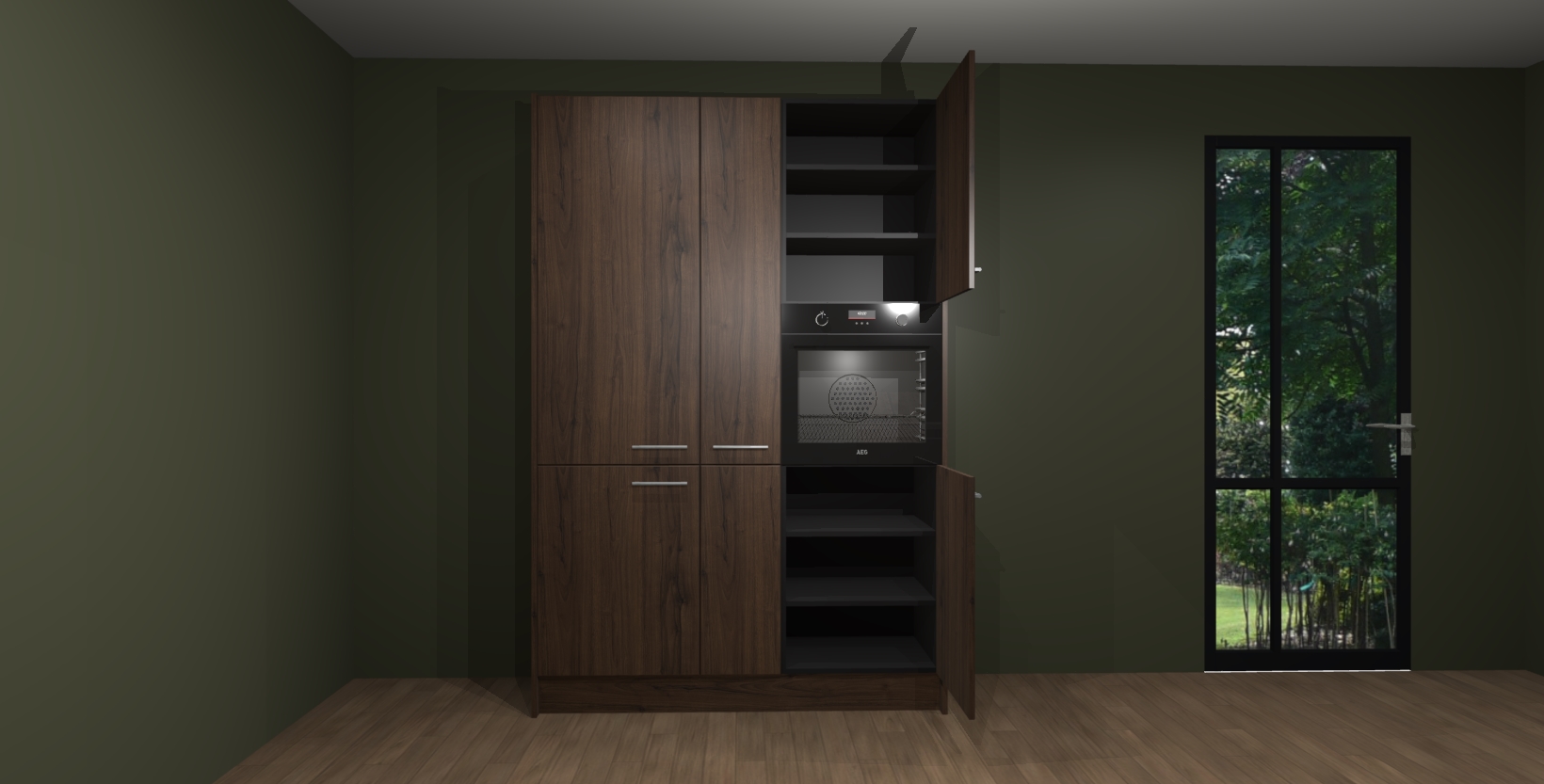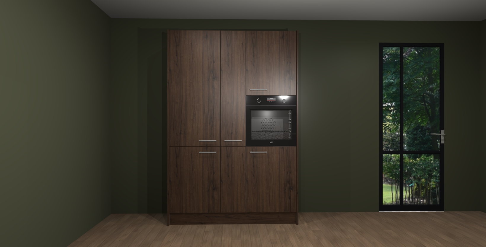 Met een modern, tijdloos design en ruime opslagruimte, zult u zich in no-time thuis voelen in uw nieuwe keuken. Uw leven wordt eenvoudiger met de soft-close deuren die voor het ultieme stille comfort zorgen - geen geluid dat u stoort terwijl u kookt. Ook is de keuken voorzien van 5 ingebouwde apparaten: een oven, inductie kookplaat, afzuigkap, vaatwasser en koelkast. Deze kunnen gemakkelijk na bestelling worden bijgewerkt naar AEG - waardoor uw luxe ervaring compleet is.