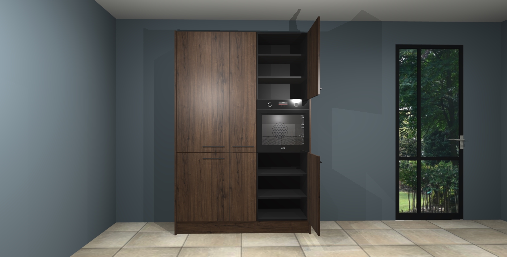 Met een modern, tijdloos design en ruime opslagruimte, zult u zich in no-time thuis voelen in uw nieuwe keuken. Uw leven wordt eenvoudiger met de soft-close deuren die voor het ultieme stille comfort zorgen - geen geluid dat u stoort terwijl u kookt. Ook is de keuken voorzien van 5 ingebouwde apparaten: een oven, inductie kookplaat, afzuigkap, vaatwasser en koelkast. Deze kunnen gemakkelijk na bestelling worden bijgewerkt naar AEG - waardoor uw luxe ervaring compleet is.