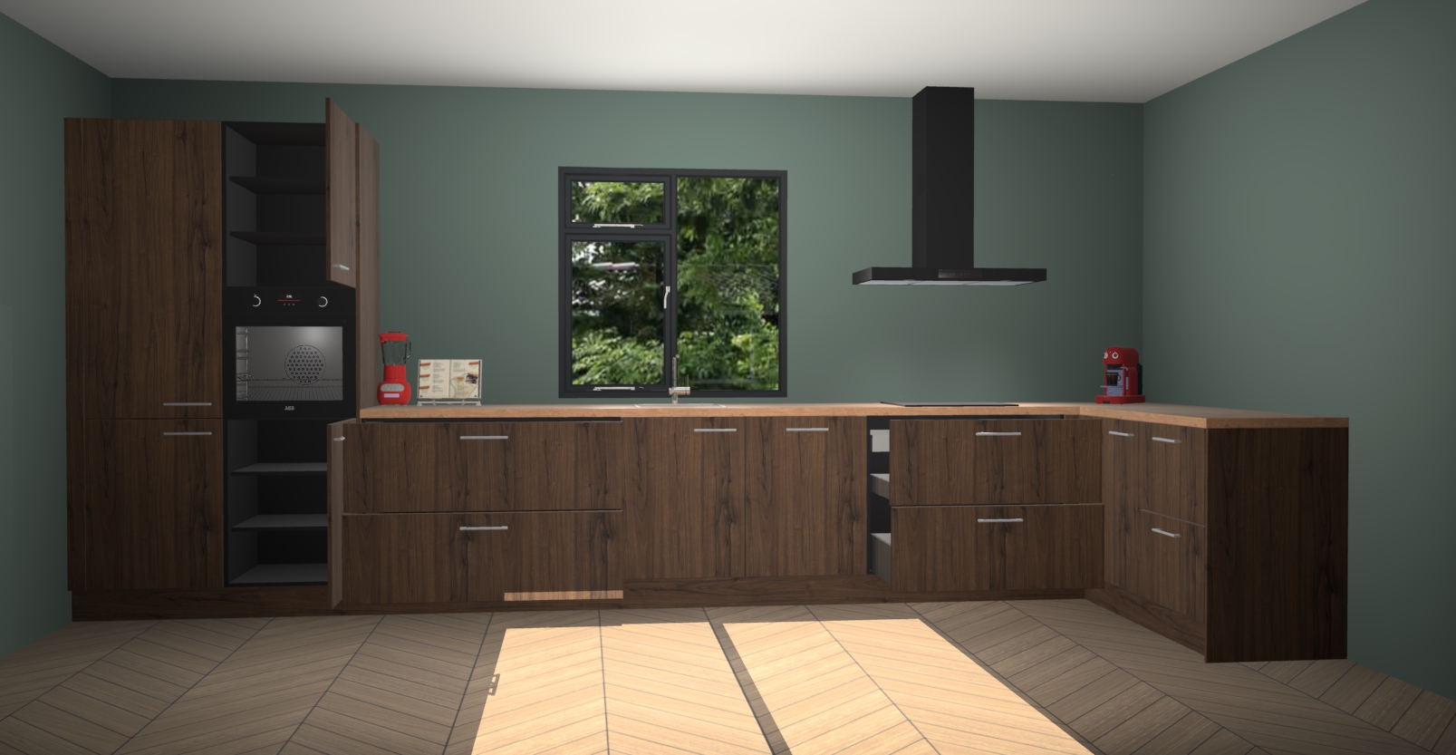De Noten keuken Lille wordt geleverd met vijf inbouwapparaten - een oven, inductiekookplaat, afzuigkap, vaatwasser en koelkast. Maar dat is nog niet alles! Na bestelling kunnen deze apparaten eenvoudig worden geüpgraded naar premium AEG-apparatuur. Bovendien is er zelfs de optie om de oven te vervangen door een combimagnetron of uw inductiekookplaat te vervangen door een kookplaat met geïntegreerde afzuiging.