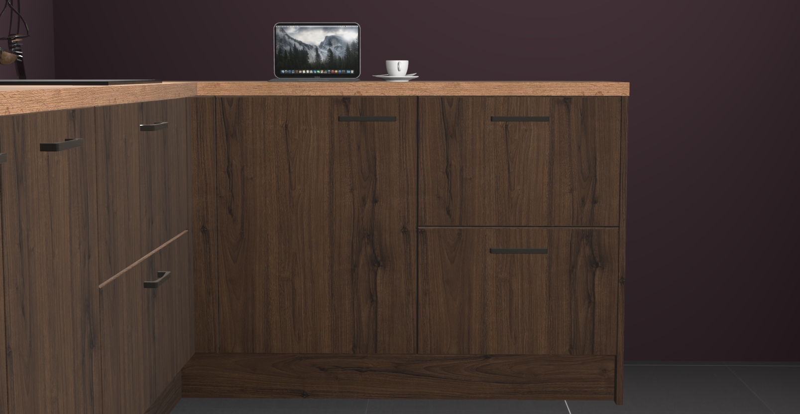 De Noten keuken Lille wordt geleverd met vijf inbouwapparaten - een oven, inductiekookplaat, afzuigkap, vaatwasser en koelkast. Maar dat is nog niet alles! Na bestelling kunnen deze apparaten eenvoudig worden geüpgraded naar premium AEG-apparatuur. Bovendien is er zelfs de optie om de oven te vervangen door een combimagnetron of uw inductiekookplaat te vervangen door een kookplaat met geïntegreerde afzuiging.