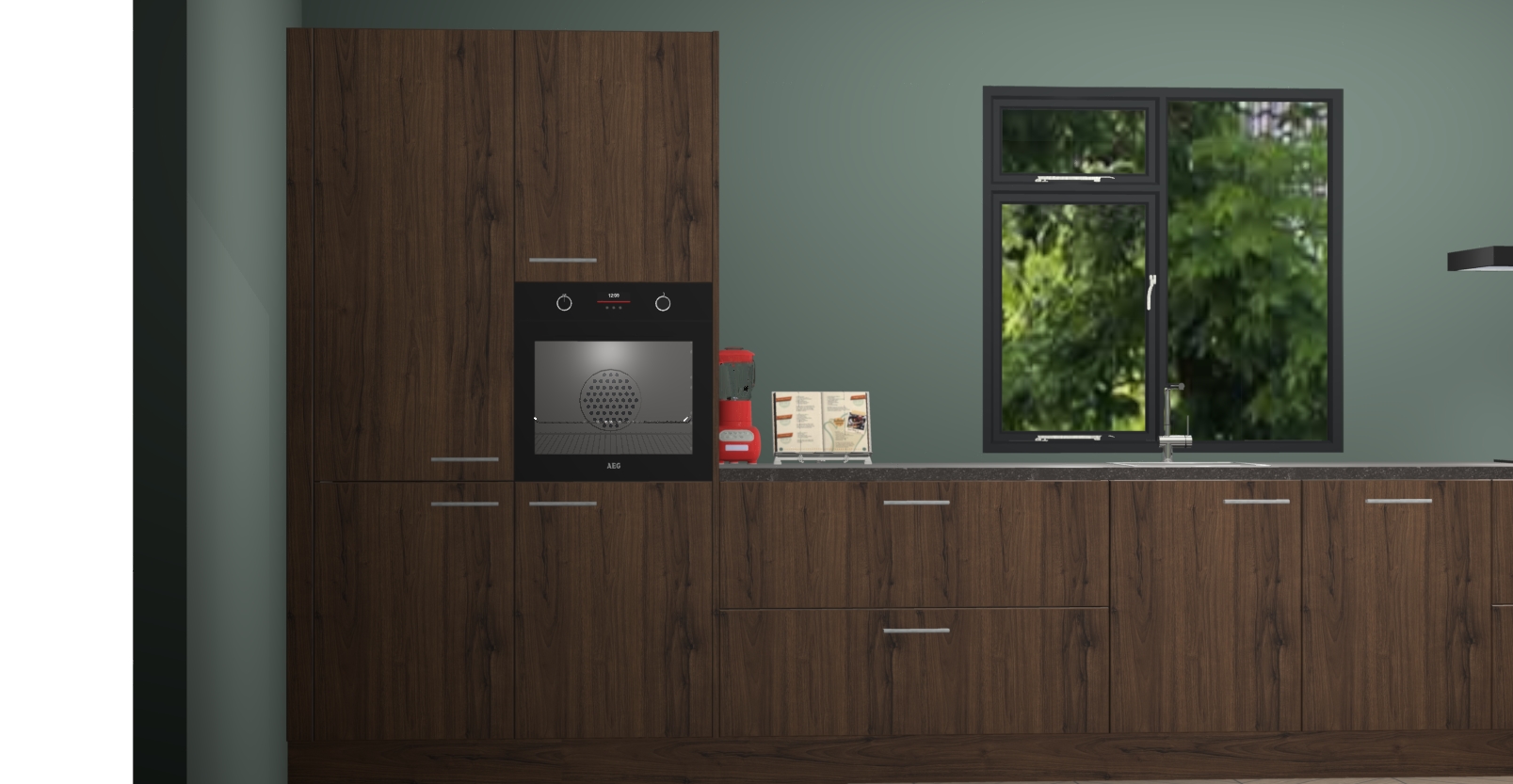 De Noten keuken Lille wordt geleverd met vijf inbouwapparaten - een oven, inductiekookplaat, afzuigkap, vaatwasser en koelkast. Maar dat is nog niet alles! Na bestelling kunnen deze apparaten eenvoudig worden geüpgraded naar premium AEG-apparatuur. Bovendien is er zelfs de optie om de oven te vervangen door een combimagnetron of uw inductiekookplaat te vervangen door een kookplaat met geïntegreerde afzuiging.