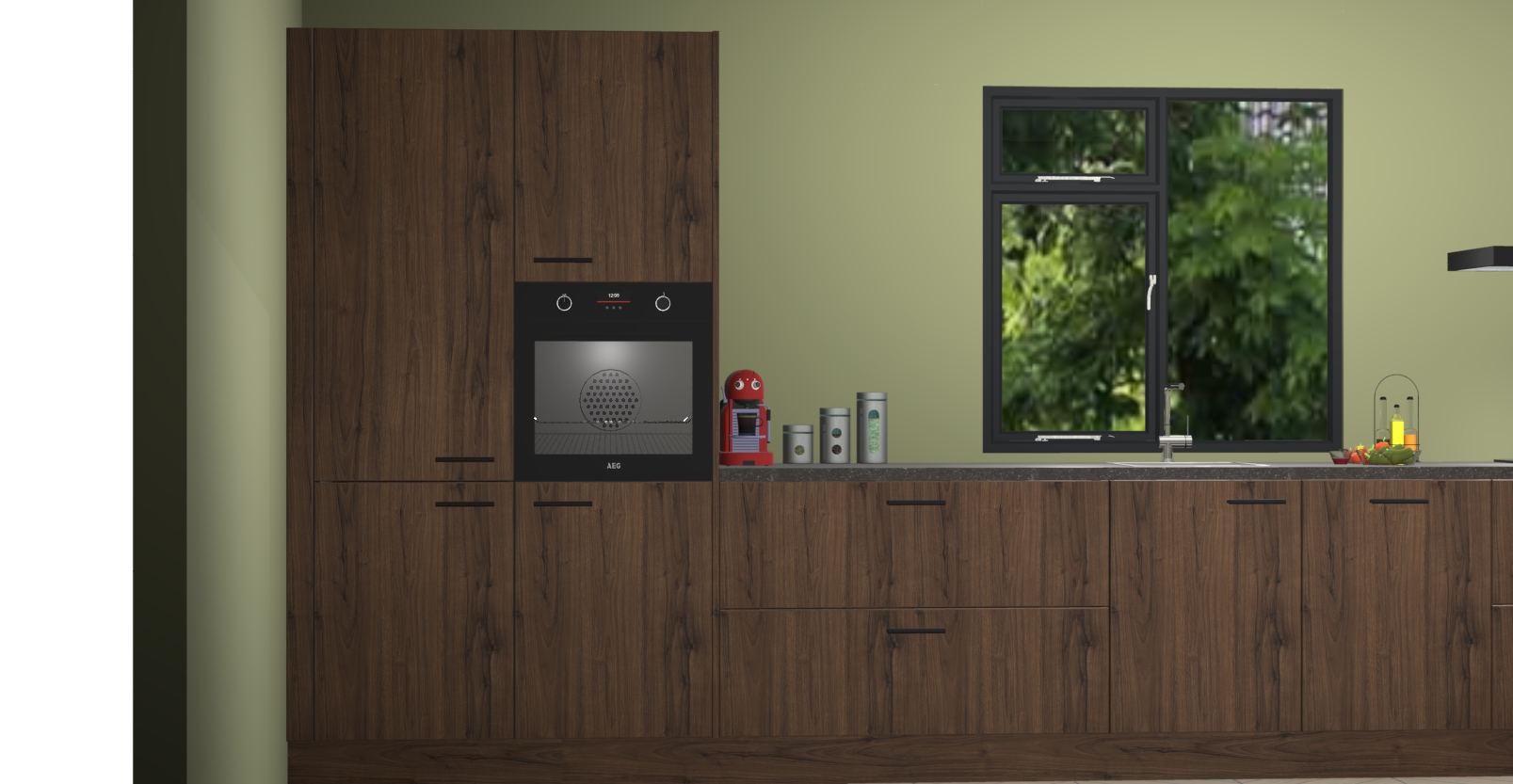 De Noten keuken Lille wordt geleverd met vijf inbouwapparaten - een oven, inductiekookplaat, afzuigkap, vaatwasser en koelkast. Maar dat is nog niet alles! Na bestelling kunnen deze apparaten eenvoudig worden geüpgraded naar premium AEG-apparatuur. Bovendien is er zelfs de optie om de oven te vervangen door een combimagnetron of uw inductiekookplaat te vervangen door een kookplaat met geïntegreerde afzuiging.