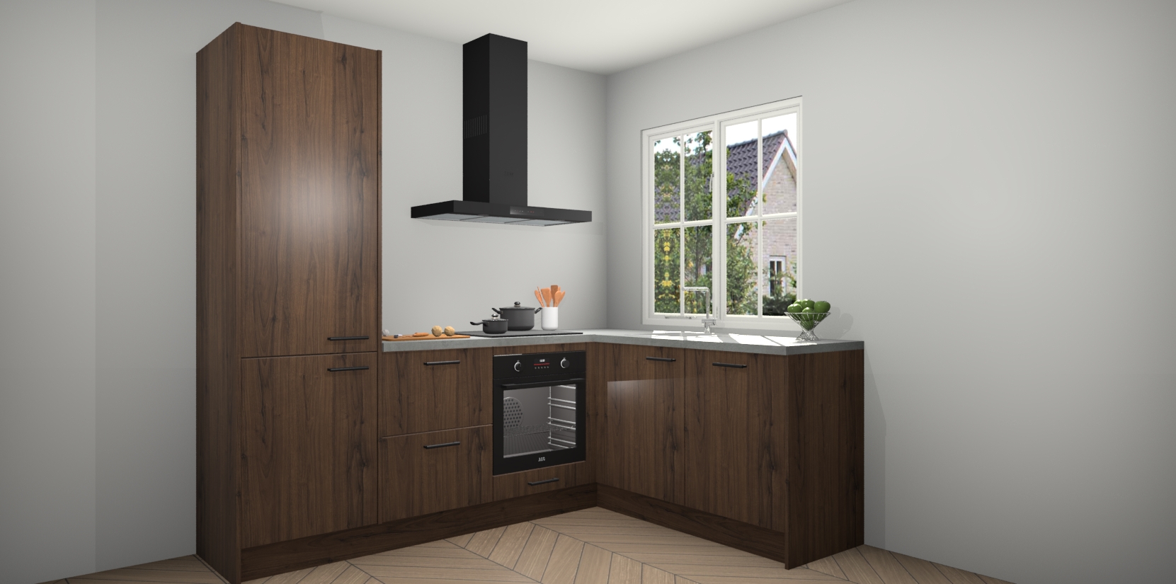 De Noten keuken Linz is de perfecte keuze voor uw nieuwe moderne en tijdloze keuken. Ga voor moderne en tijdloze elegantie in uw keuken. De prachtige hoekkeuken biedt een verfrissende kijk op de manier waarop we ons vertrouwde keukenontwerp kunnen aanpassen in een nieuwe stijl. Één blik om alles te zien: zo mooi dat het bijna magisch lijkt.
