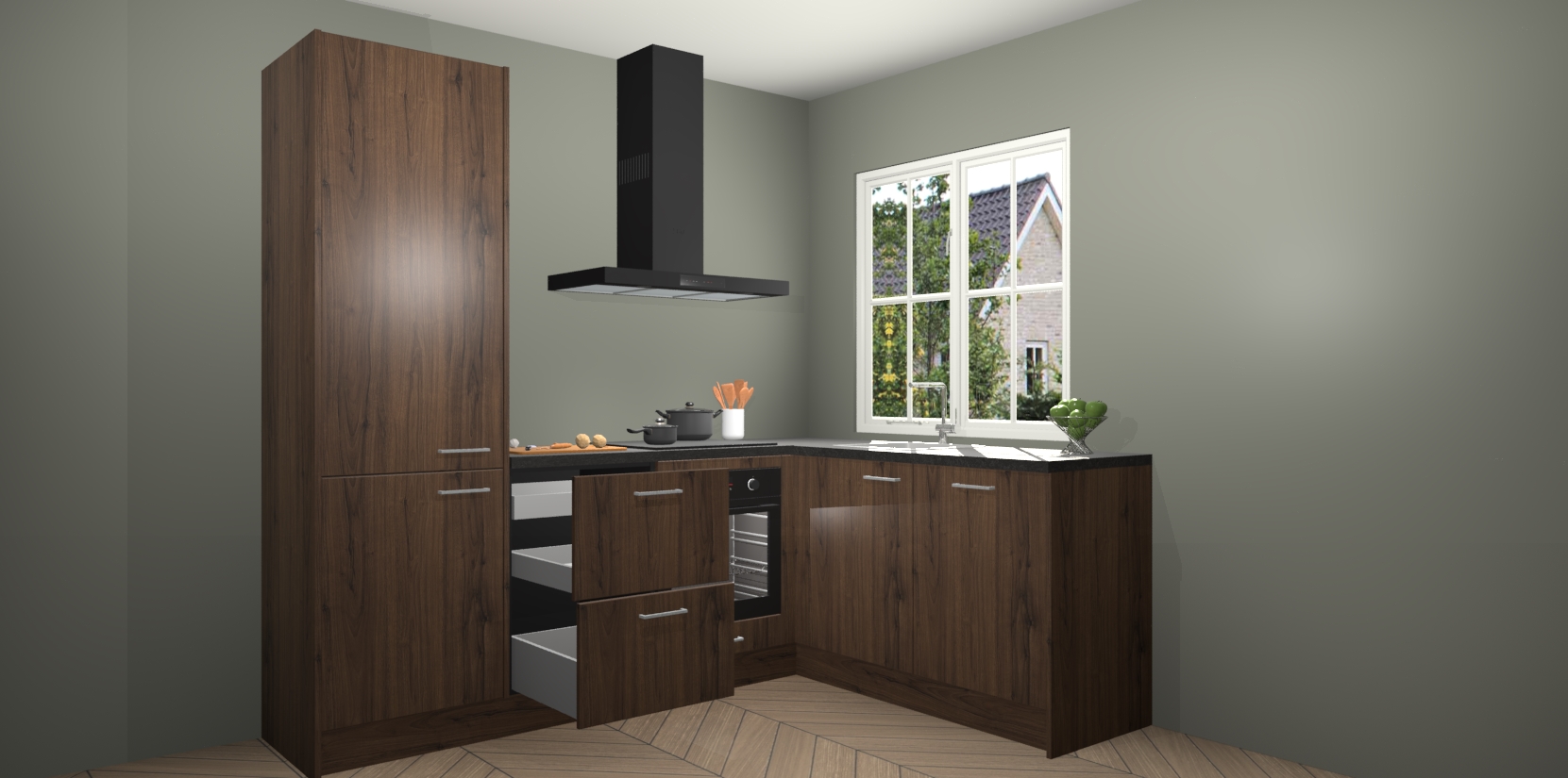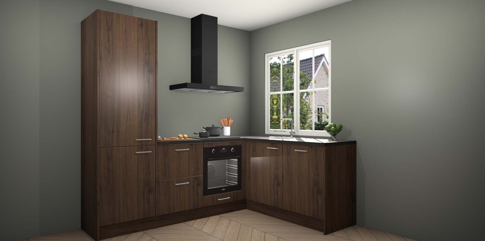 De Noten keuken Linz is de perfecte keuze voor uw nieuwe moderne en tijdloze keuken. Ga voor moderne en tijdloze elegantie in uw keuken. De prachtige hoekkeuken biedt een verfrissende kijk op de manier waarop we ons vertrouwde keukenontwerp kunnen aanpassen in een nieuwe stijl. Één blik om alles te zien: zo mooi dat het bijna magisch lijkt.