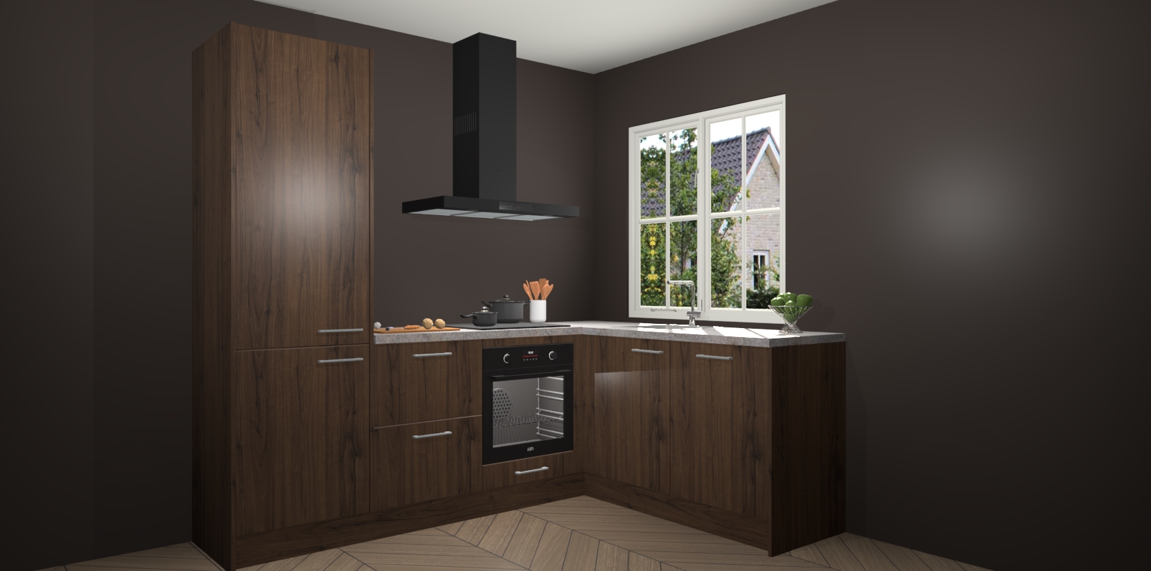 De Noten keuken Linz is de perfecte keuze voor uw nieuwe moderne en tijdloze keuken. Ga voor moderne en tijdloze elegantie in uw keuken. De prachtige hoekkeuken biedt een verfrissende kijk op de manier waarop we ons vertrouwde keukenontwerp kunnen aanpassen in een nieuwe stijl.  Één blik om alles te zien: zo mooi dat het bijna magisch lijkt.