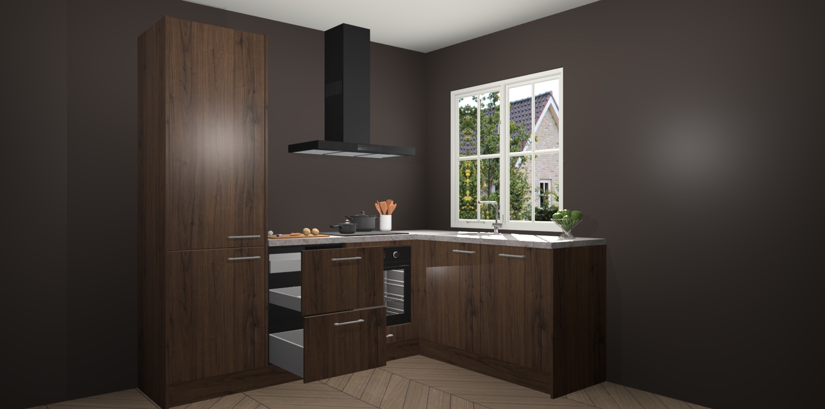Het grote voordeel is dat uw Noten keuken Linz wordt geleverd met een beperkte levertijd van slechts 7 weken! Daarom moet u er snel bij zijn; want als u dit fantastische meubilair mist, kan niets anders dan spijt voelen. Ga direct aan de slag met uw droomkeuken door nu de Noten keuken Linz te bestellen - duizend woorden plaatjes in één woord: perfectie.