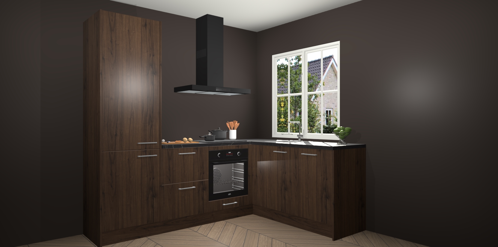 De Noten keuken Linz is de perfecte keuze voor uw nieuwe moderne en tijdloze keuken. Ga voor moderne en tijdloze elegantie in uw keuken. De prachtige hoekkeuken biedt een verfrissende kijk op de manier waarop we ons vertrouwde keukenontwerp kunnen aanpassen in een nieuwe stijl. Één blik om alles te zien: zo mooi dat het bijna magisch lijkt.