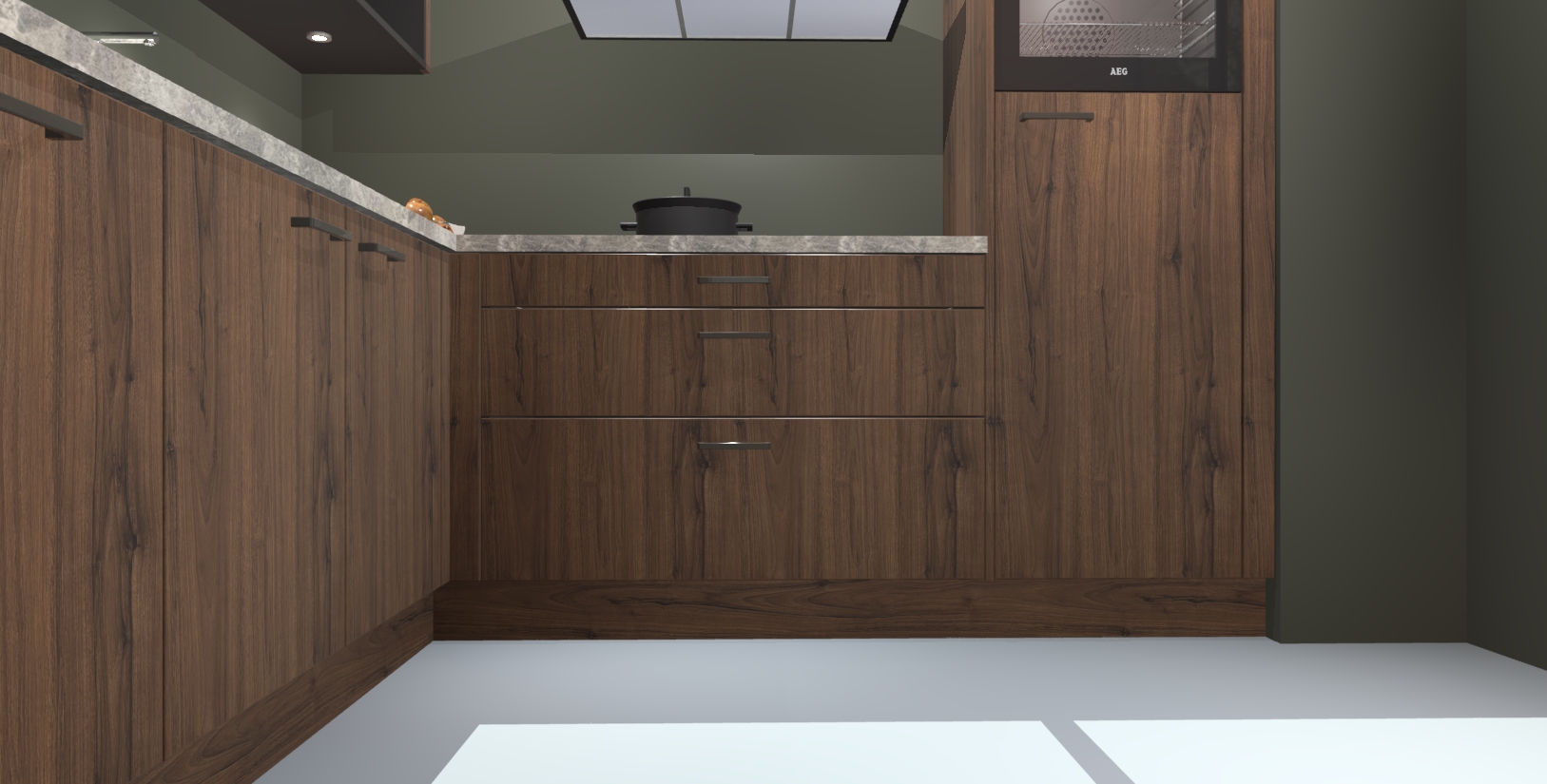 Met een modern, tijdloos design en ruime opslagruimte, zult u zich in no-time thuis voelen in uw nieuwe keuken. Uw leven wordt eenvoudiger met de soft-close deuren die voor het ultieme stille comfort zorgen - geen geluid dat u stoort terwijl u kookt. Ook is de keuken voorzien van 5 ingebouwde apparaten: een oven, inductie kookplaat, afzuigkap, vaatwasser en koelkast. Deze kunnen gemakkelijk na bestelling worden bijgewerkt naar AEG - waardoor uw luxe ervaring compleet is.