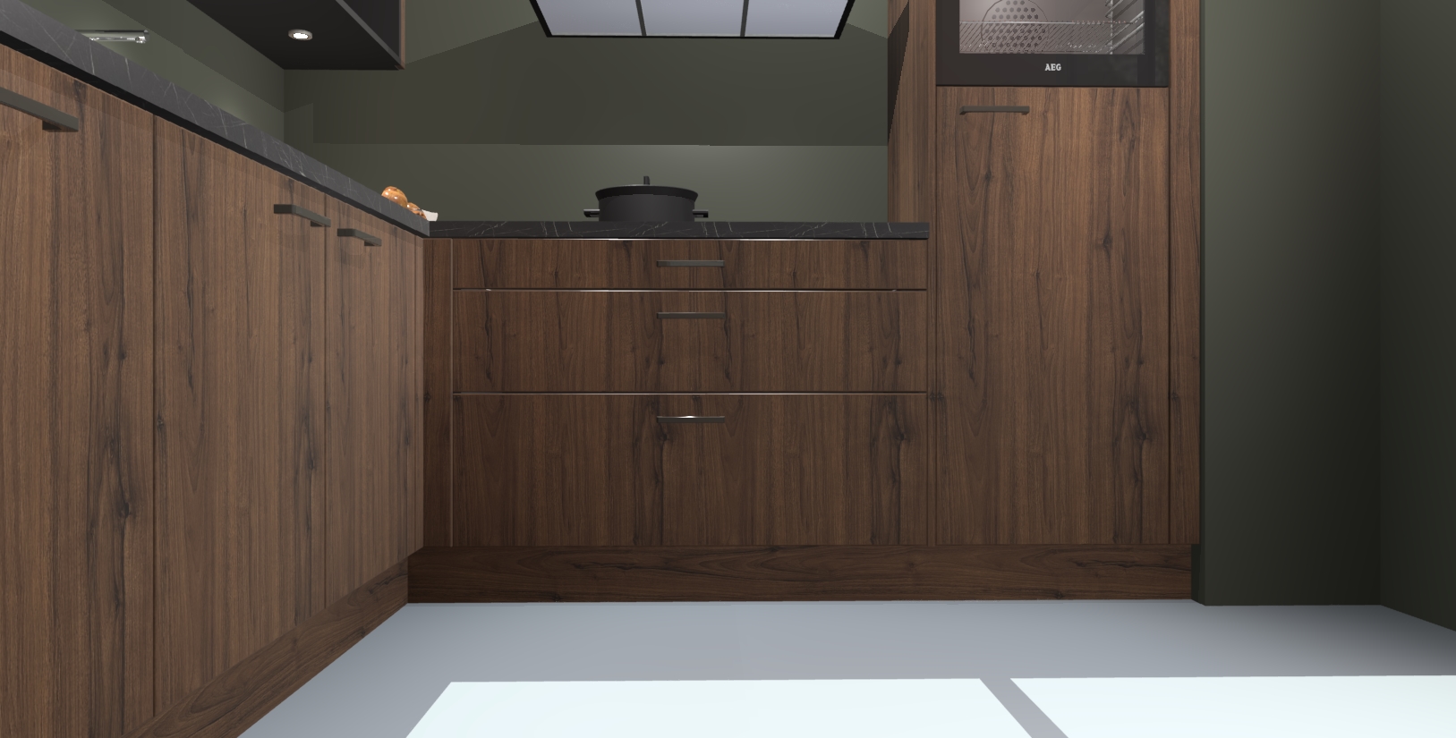 Met een modern, tijdloos design en ruime opslagruimte, zult u zich in no-time thuis voelen in uw nieuwe keuken. Uw leven wordt eenvoudiger met de soft-close deuren die voor het ultieme stille comfort zorgen - geen geluid dat u stoort terwijl u kookt. Ook is de keuken voorzien van 5 ingebouwde apparaten: een oven, inductie kookplaat, afzuigkap, vaatwasser en koelkast. Deze kunnen gemakkelijk na bestelling worden bijgewerkt naar AEG - waardoor uw luxe ervaring compleet is.