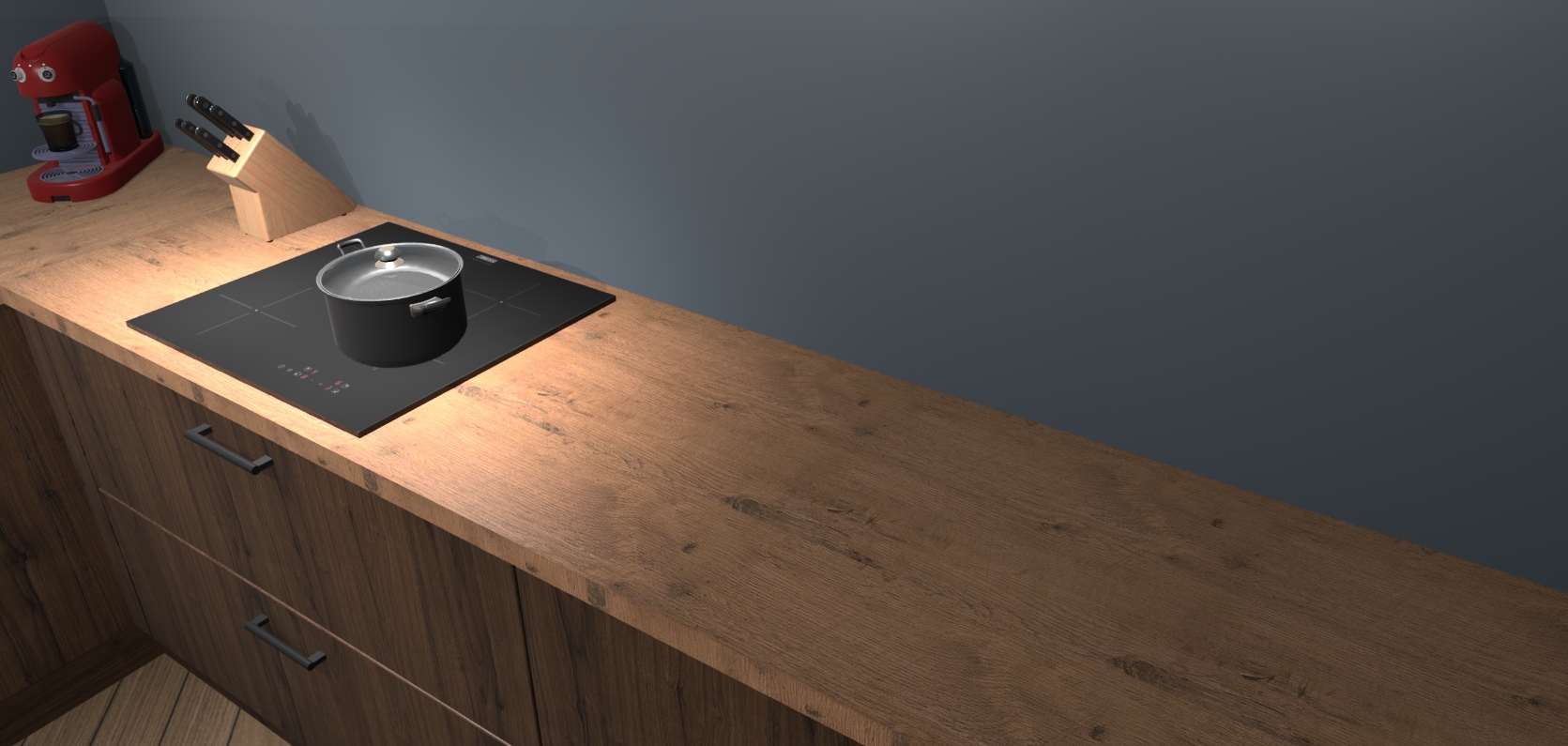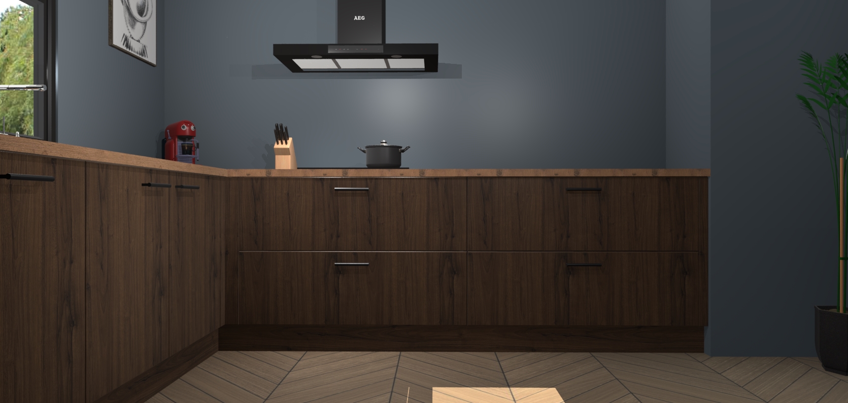 Inclusief plinten, stelpoten en werkblad