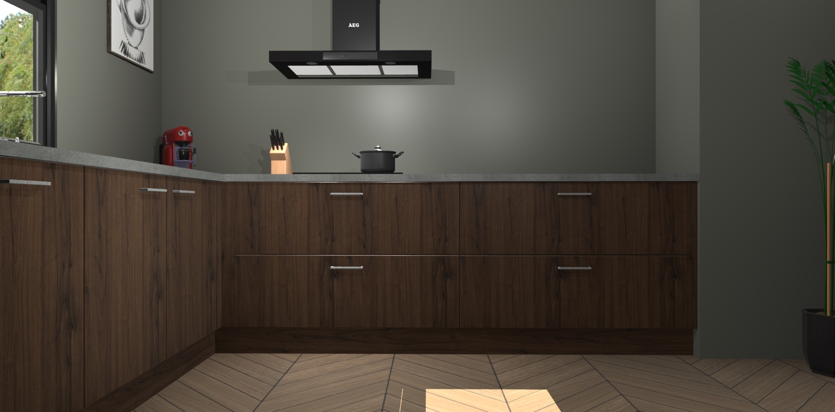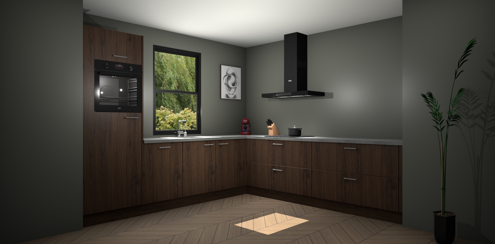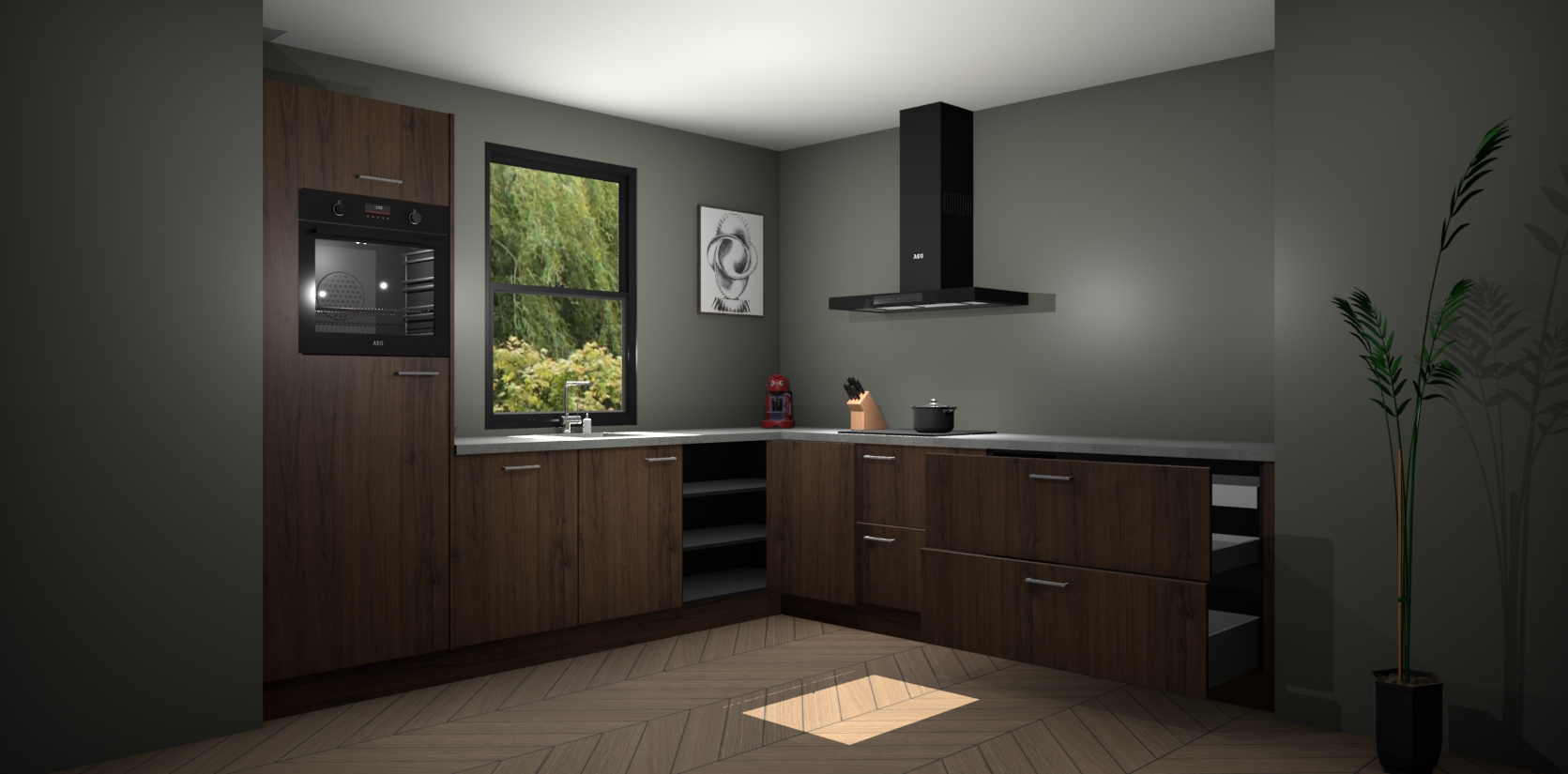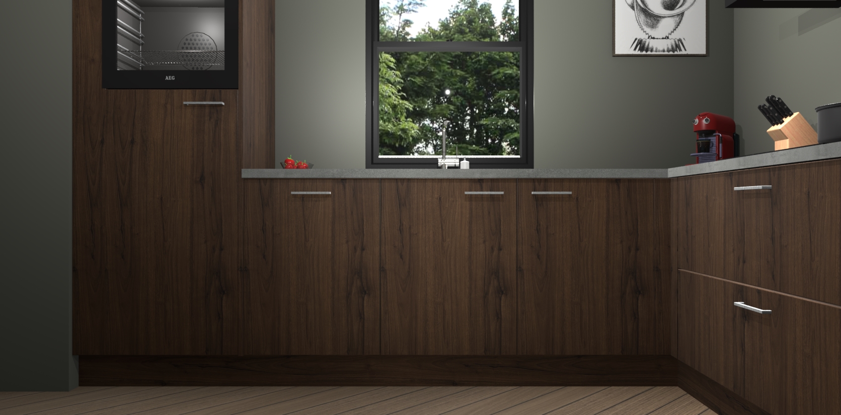 Welkom bij de noten keuken Lublin. Deze prachtige keuken zal de komende jaren het middelpunt van de belangstelling in uw huis zijn. Uitgerust met vijf inbouwapparaten komt u nooit kookgereedschap tekort. Bovendien geeft de warme houtlook elke ruimte een uitnodigende en tijdloze uitstraling.