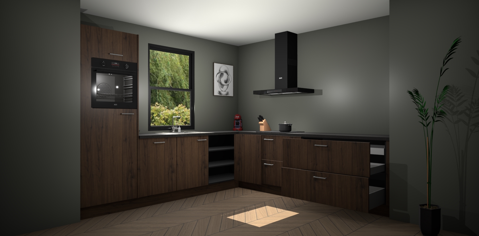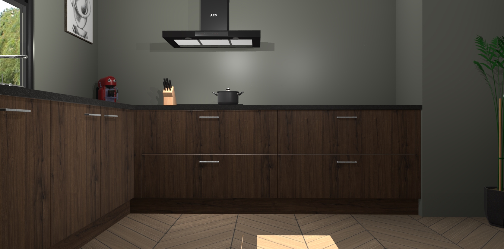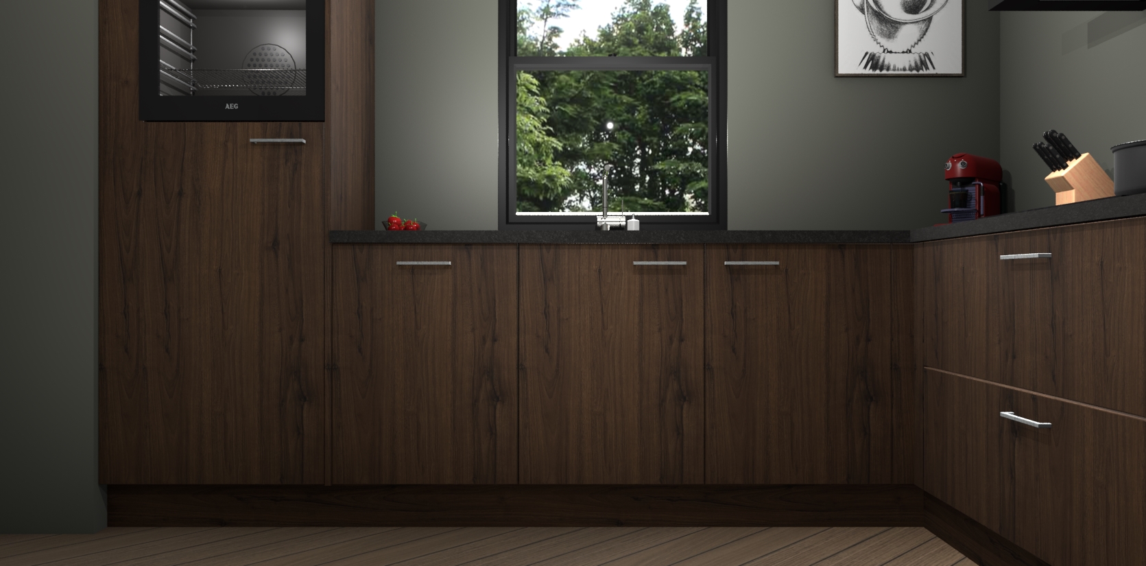 Welkom bij de noten keuken Lublin. Deze prachtige keuken zal de komende jaren het middelpunt van de belangstelling in uw huis zijn. Uitgerust met vijf inbouwapparaten komt u nooit kookgereedschap tekort. Bovendien geeft de warme houtlook elke ruimte een uitnodigende en tijdloze uitstraling.