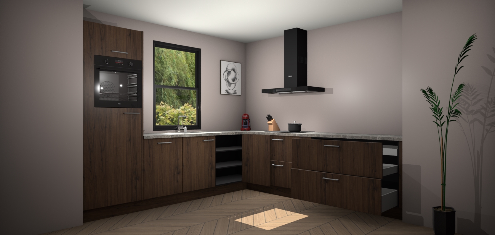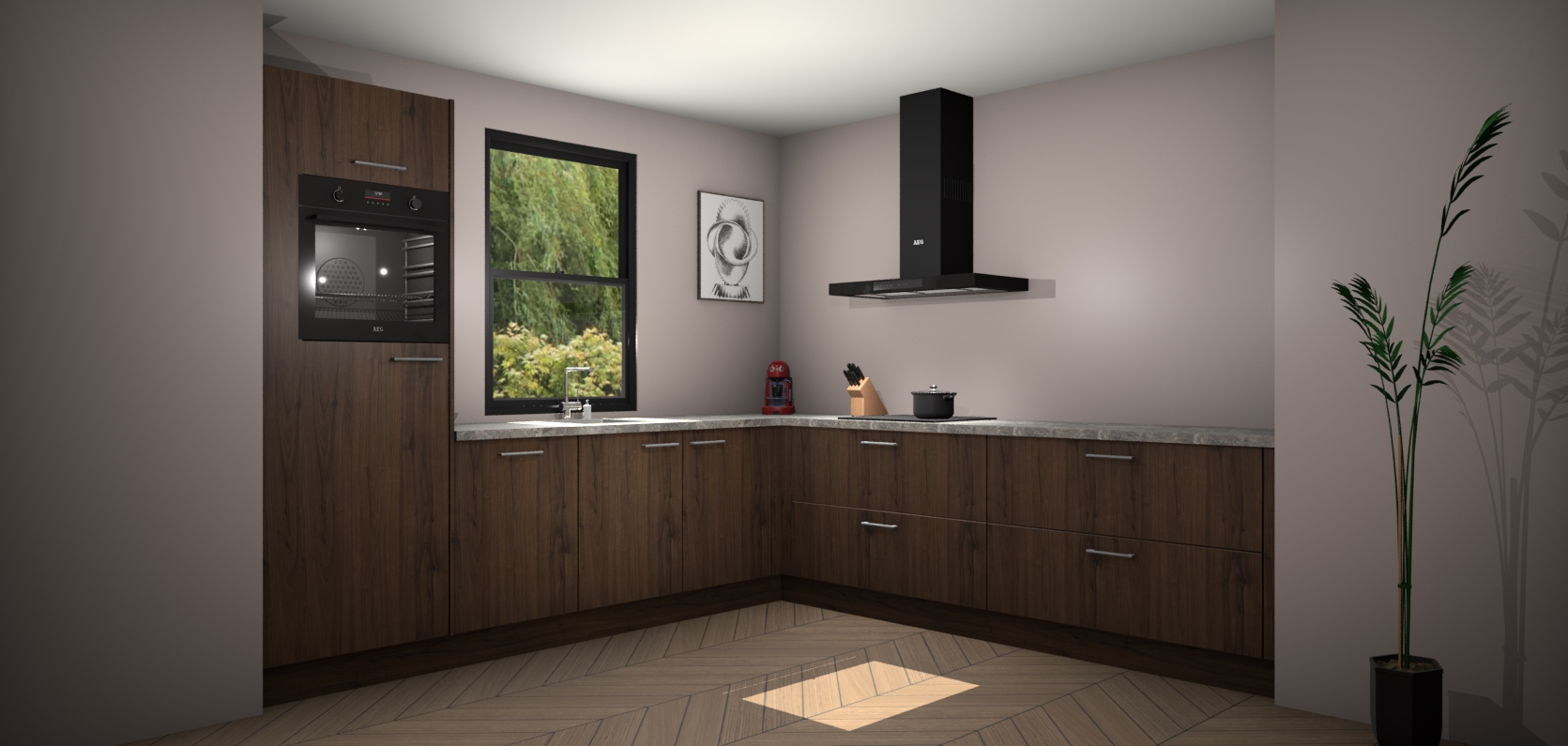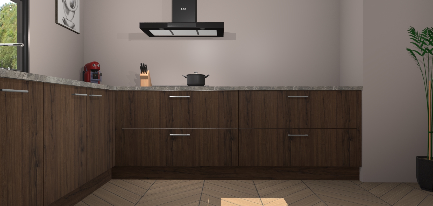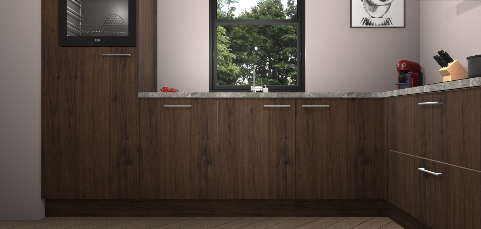 Welkom bij de noten keuken Lublin. Deze prachtige keuken zal de komende jaren het middelpunt van de belangstelling in uw huis zijn. Uitgerust met vijf inbouwapparaten komt u nooit kookgereedschap tekort. Bovendien geeft de warme houtlook elke ruimte een uitnodigende en tijdloze uitstraling.