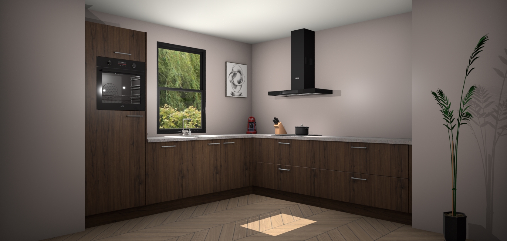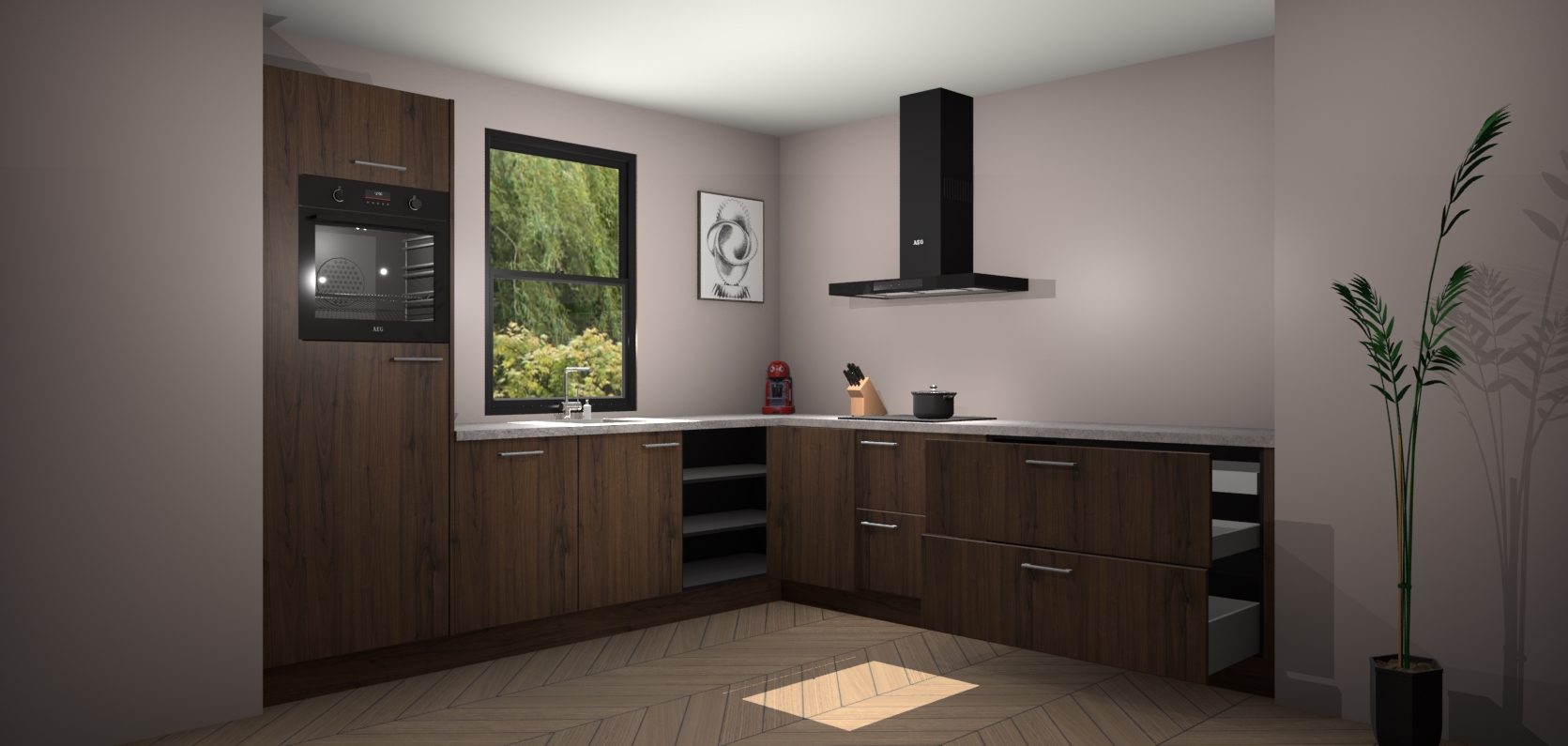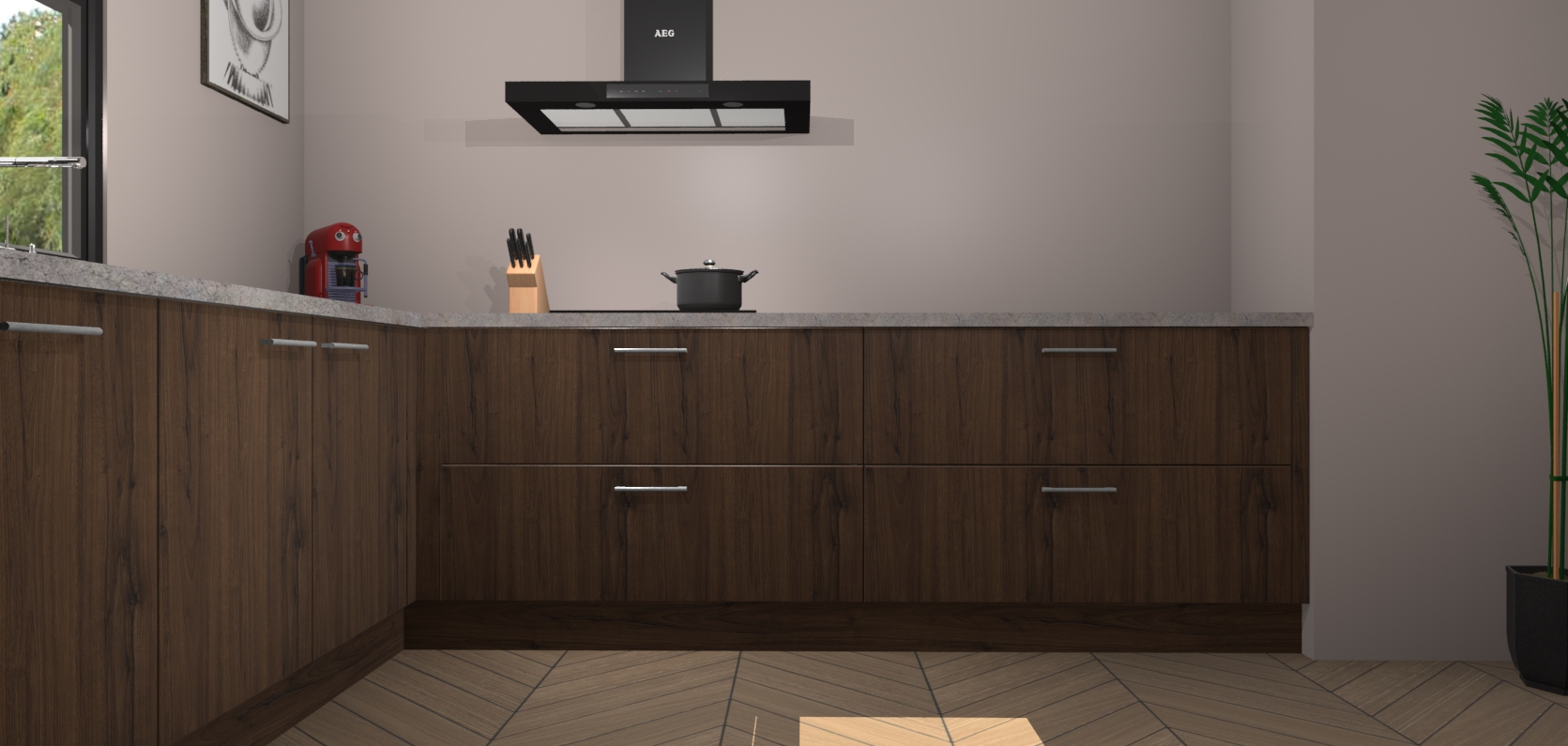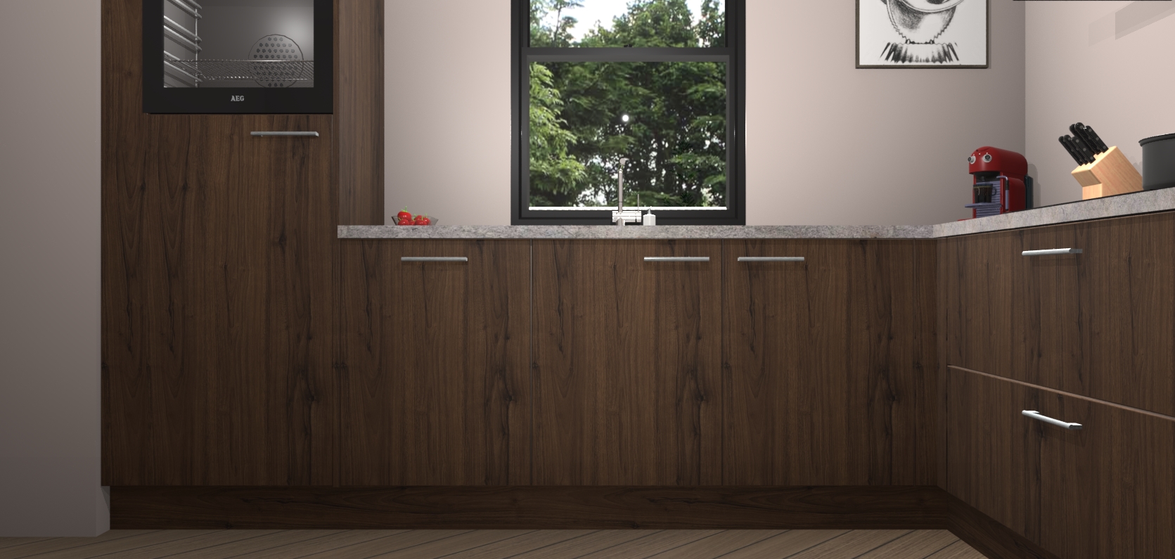 Welkom bij de noten keuken Lublin. Deze prachtige keuken zal de komende jaren het middelpunt van de belangstelling in uw huis zijn. Uitgerust met vijf inbouwapparaten komt u nooit kookgereedschap tekort. Bovendien geeft de warme houtlook elke ruimte een uitnodigende en tijdloze uitstraling.
