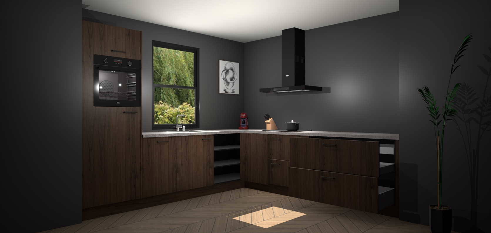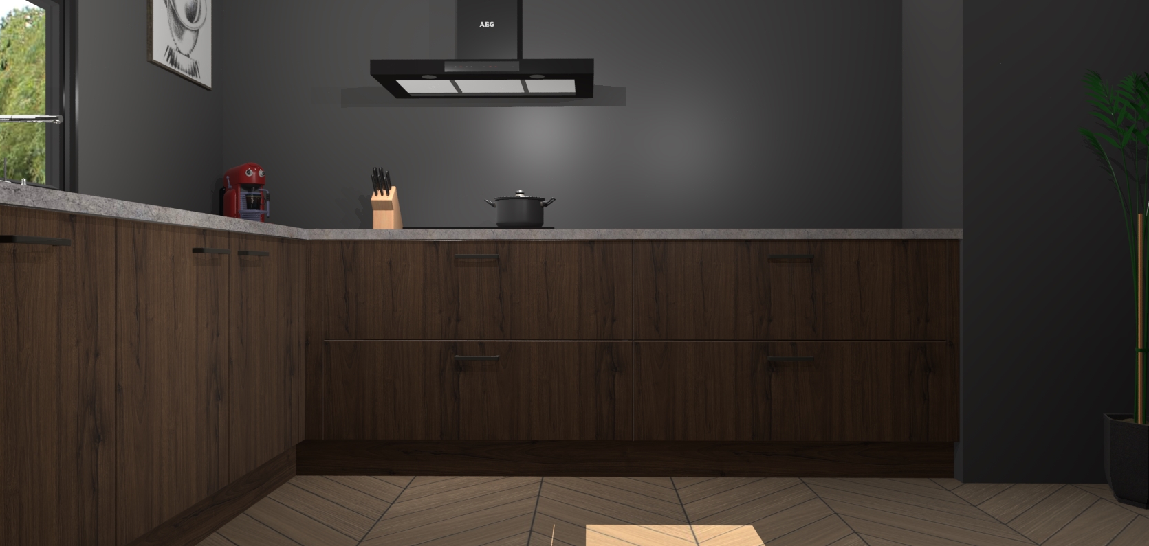 Welkom bij de noten keuken Lublin. Deze prachtige keuken zal de komende jaren het middelpunt van de belangstelling in uw huis zijn. Uitgerust met vijf inbouwapparaten komt u nooit kookgereedschap tekort. Bovendien geeft de warme houtlook elke ruimte een uitnodigende en tijdloze uitstraling.