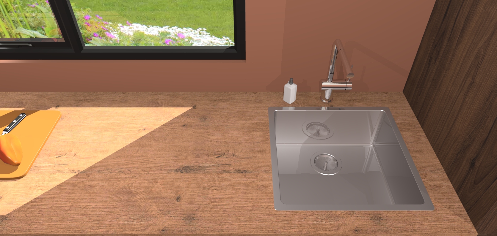 - De spoelbak is nog niet in gevreesd. Dit dient tijdens het werk gedaan te worden