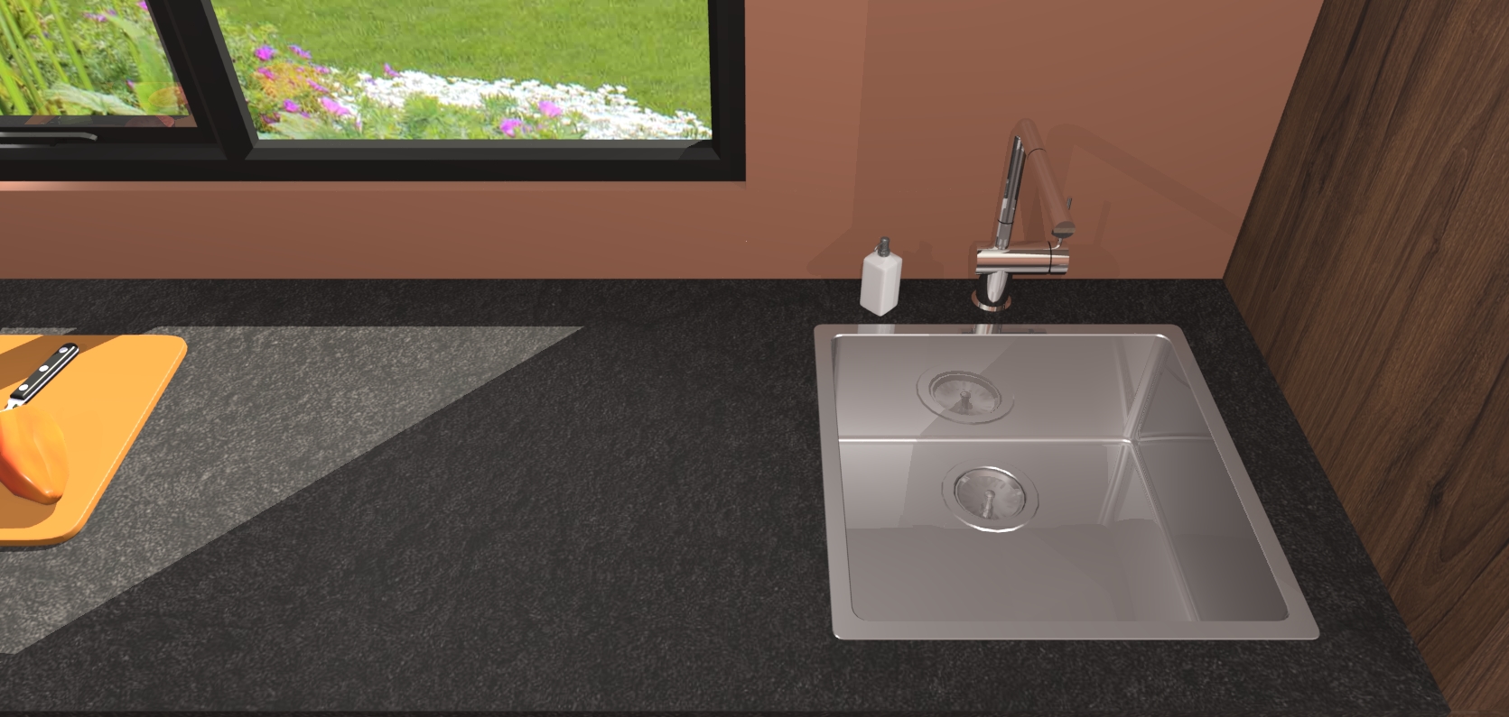 - De spoelbak is nog niet in gevreesd. Dit dient tijdens het werk gedaan te worden