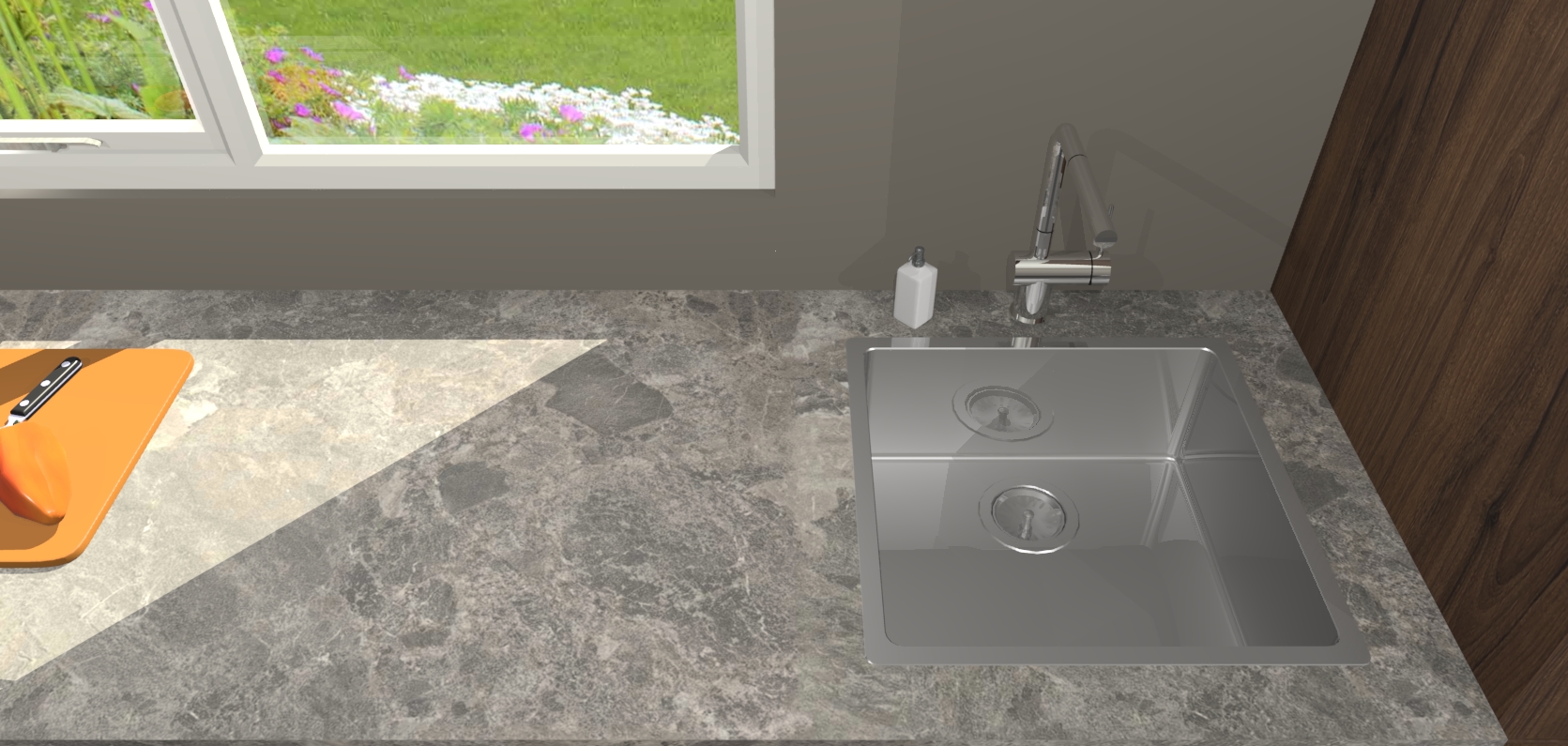 - De spoelbak is nog niet in gevreesd. Dit dient tijdens het werk gedaan te worden