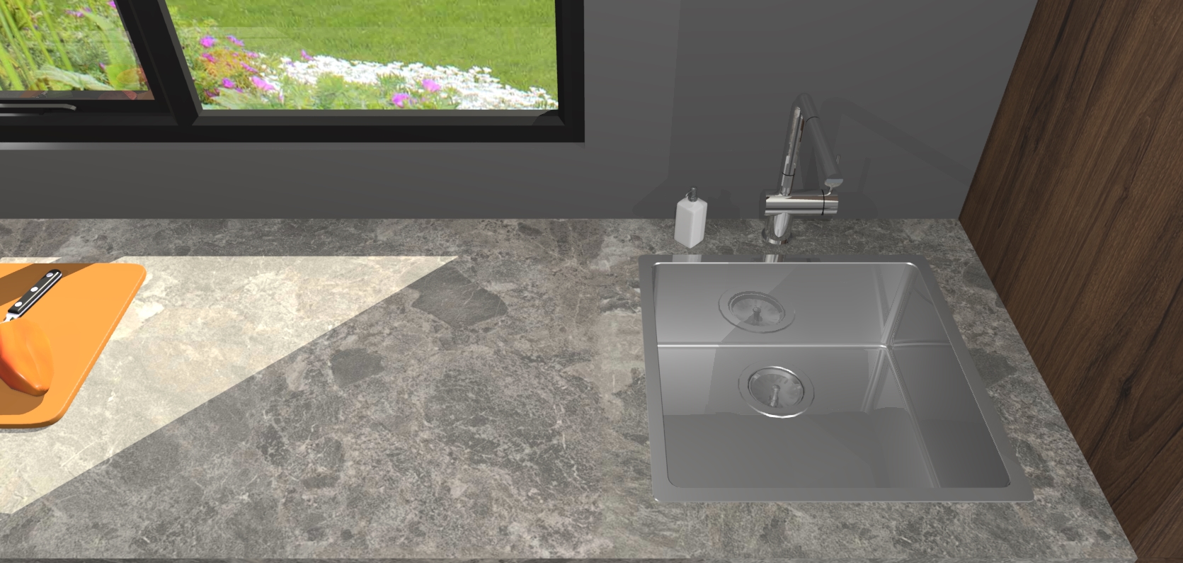 - De spoelbak is nog niet in gevreesd. Dit dient tijdens het werk gedaan te worden