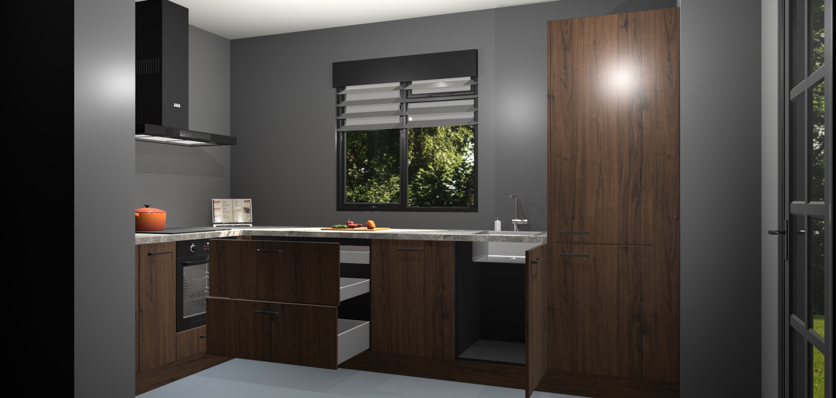 Moedige modernisten! De Noten keuken Luzern is het perfecte antwoord op al uw keukendromen. Dit geraffineerde, tijdloze ontwerp combineert strakke kasten zodat u die dure look krijgt zonder het dure prijskaartje. We weten dat planning en uitvoering de sleutels zijn tot een geslaagde keukenrenovatie, dus hebben we ervoor gezorgd dat we vijf inbouwapparaten in ons pakket hebben: een oven, inductiekookplaat, afzuigkap, vaatwasser en koelkast. Deze kunnen na bestelling gemakkelijk worden uitgebreid voor nog meer gemak.