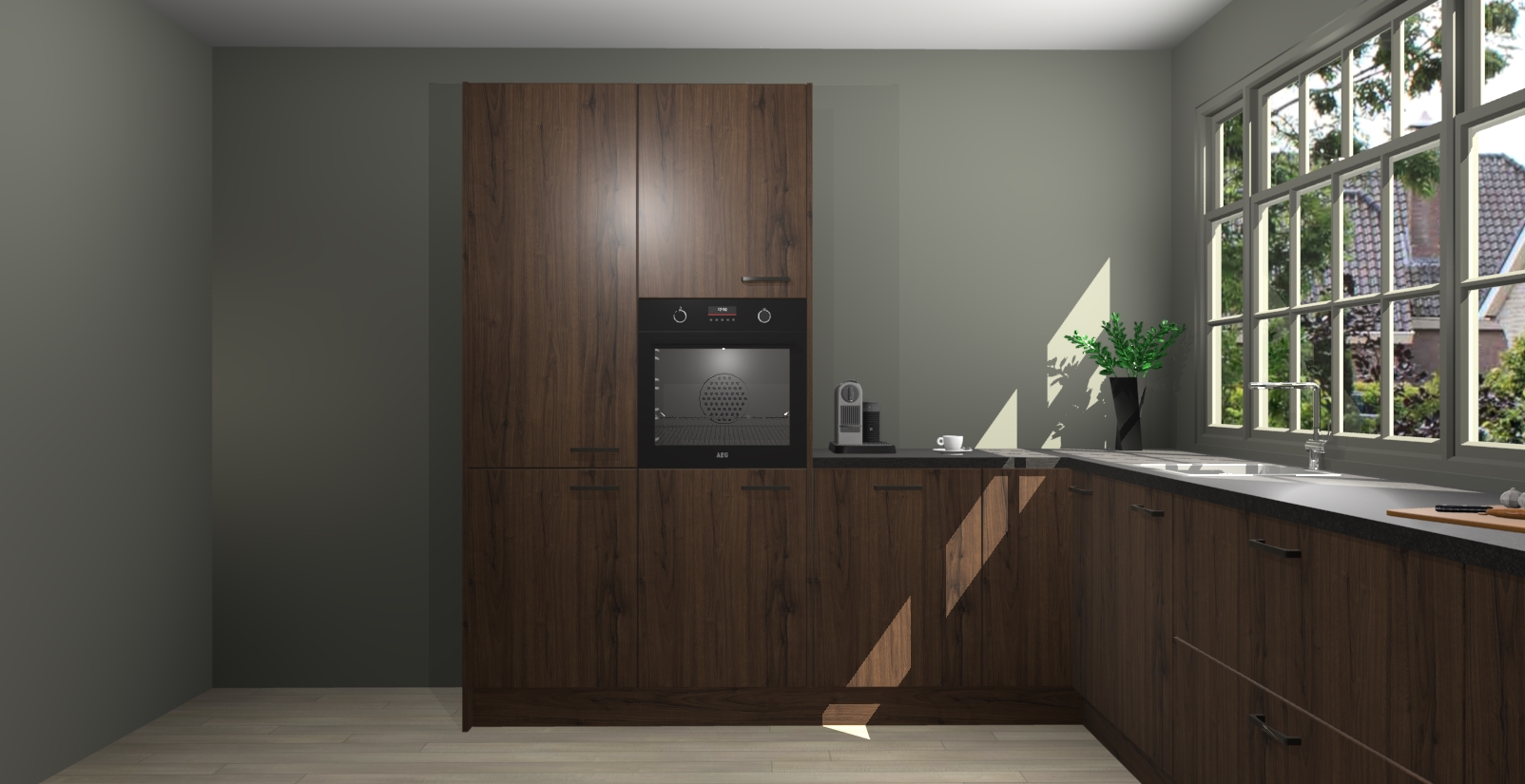 Kom dichtbij de perfecte keuken van uw dromen met de Noten keuken Malaga. Met een prachtige houtlook en eigentijds ontwerp, straalt deze keuken warmte en sfeer uit. Of u nu liefhebber bent van traditionele of moderne stijlen, er is genoeg ruimte om aan al uw behoeften te voldoen.
