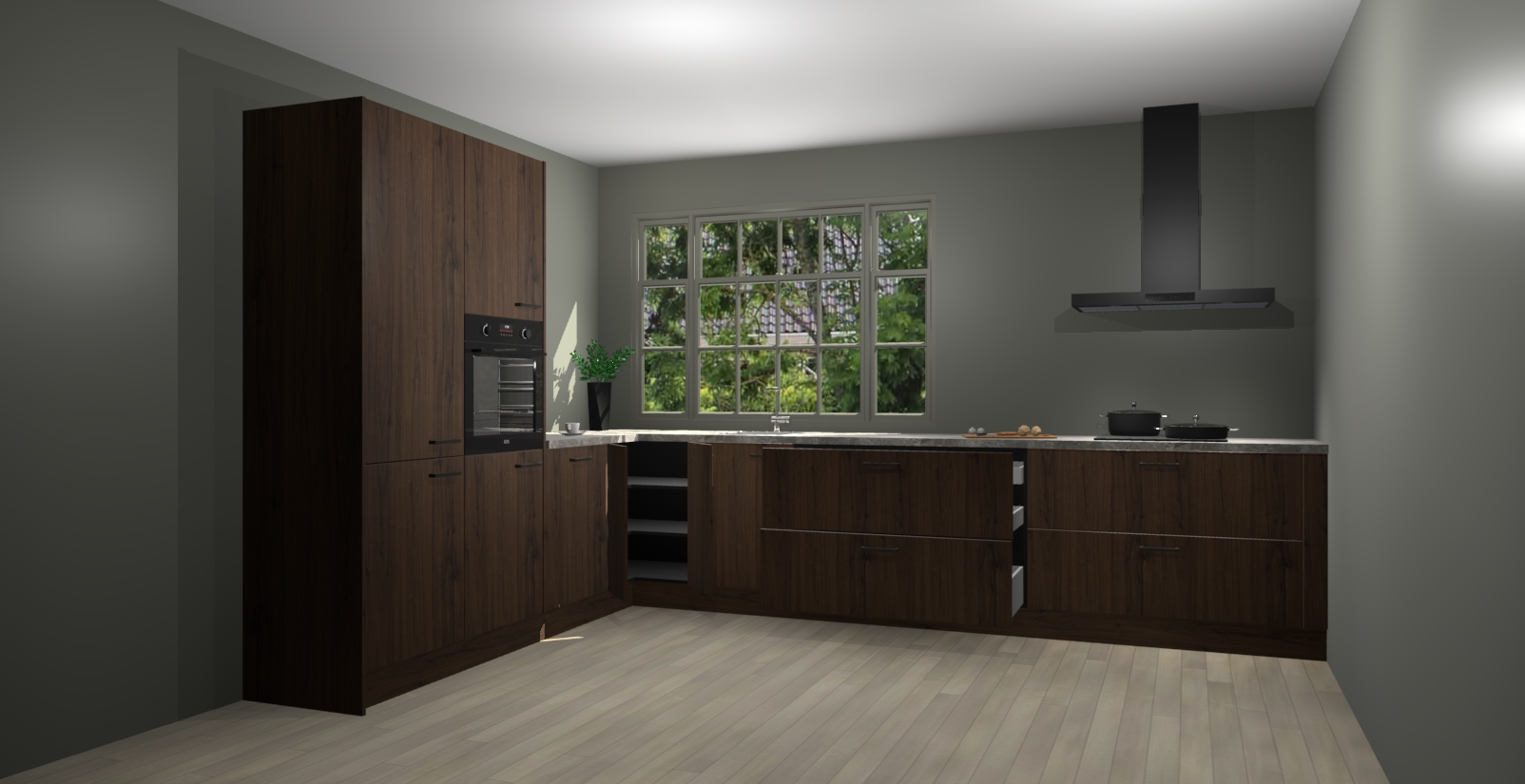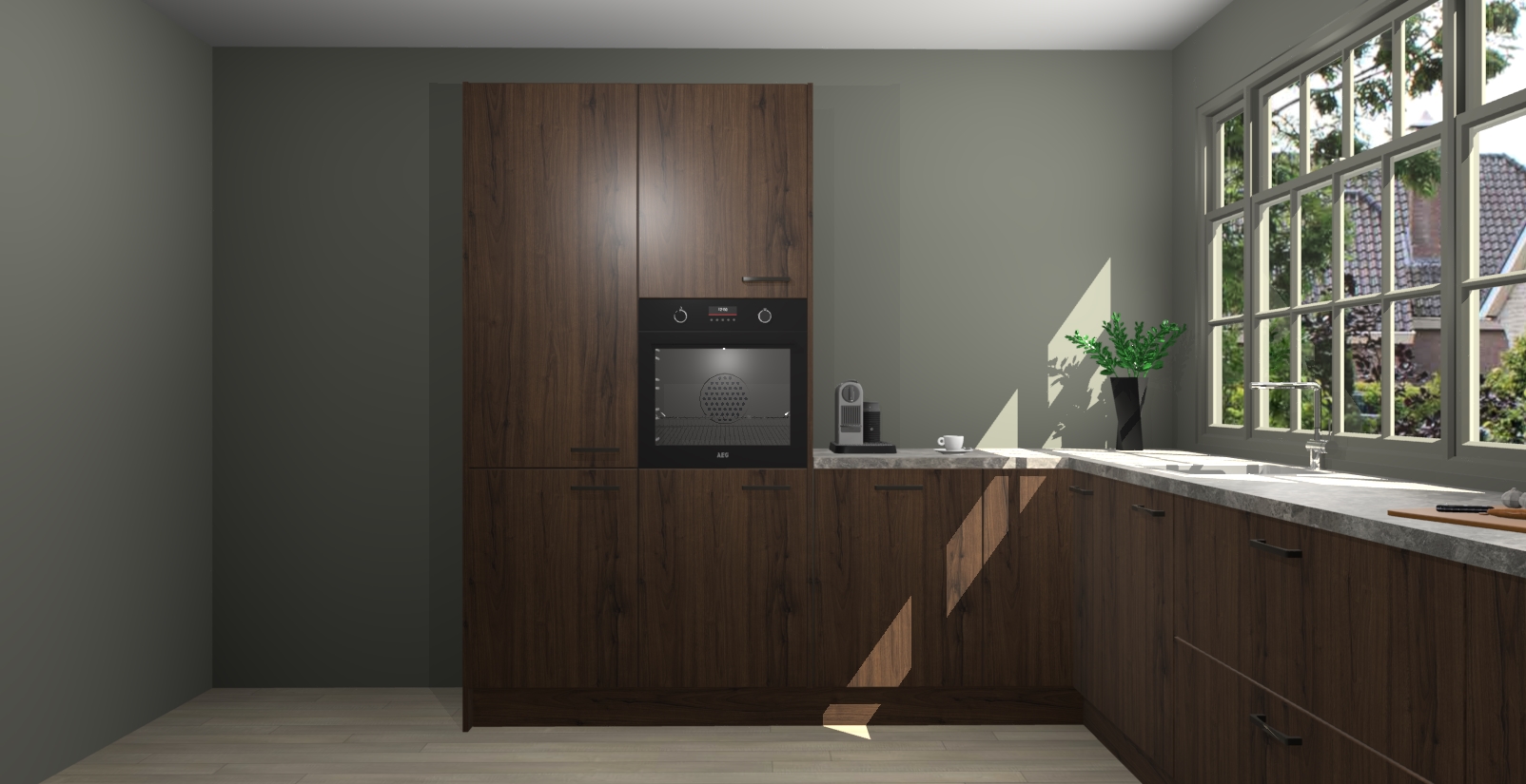 Kom dichtbij de perfecte keuken van uw dromen met de Noten keuken Malaga. Met een prachtige houtlook en eigentijds ontwerp, straalt deze keuken warmte en sfeer uit. Of u nu liefhebber bent van traditionele of moderne stijlen, er is genoeg ruimte om aan al uw behoeften te voldoen.