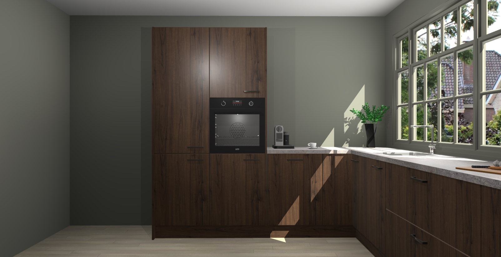 Kom dichtbij de perfecte keuken van uw dromen met de Noten keuken Malaga. Met een prachtige houtlook en eigentijds ontwerp, straalt deze keuken warmte en sfeer uit. Of u nu liefhebber bent van traditionele of moderne stijlen, er is genoeg ruimte om aan al uw behoeften te voldoen.