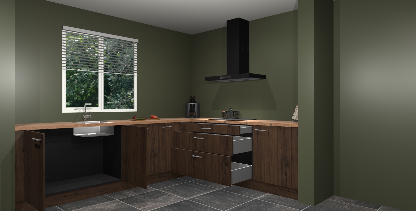 - Bij een hoekwerkblad zijn de hoeken in gevreesd en op maat gemaakt