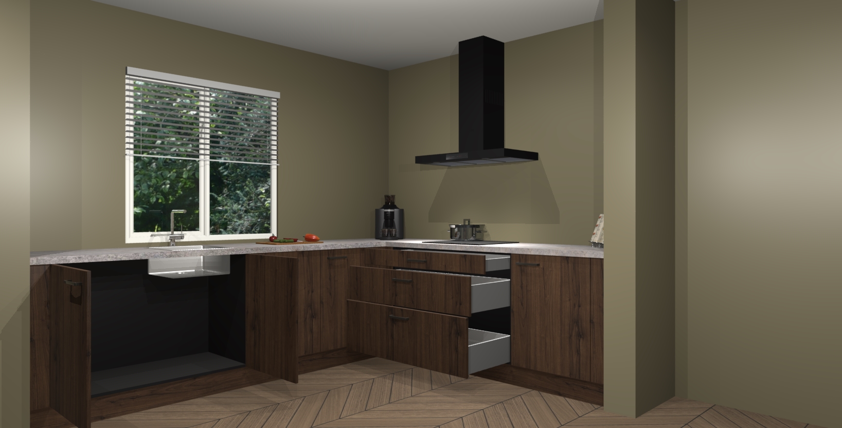 Wij presenteren de revolutie in keukens: de Noten keuken Moroni. Met modern design, een tijdloos uiterlijk en kasten die al voor gemonteerd worden geleverd, laat deze stijlvolle keuken uw kookervaring op een hele nieuwe manier transformeren.