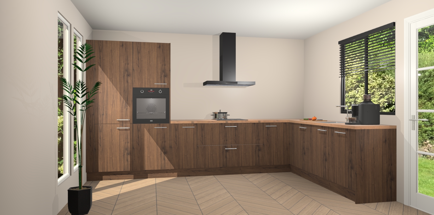 Met een modern, tijdloos design en ruime opslagruimte, zult u zich in no-time thuis voelen in uw nieuwe keuken. Uw leven wordt eenvoudiger met de soft-close deuren die voor het ultieme stille comfort zorgen - geen geluid dat u stoort terwijl u kookt. Ook is de keuken voorzien van 5 ingebouwde apparaten: een oven, inductie kookplaat, afzuigkap, vaatwasser en koelkast. Deze kunnen gemakkelijk na bestelling worden bijgewerkt naar AEG - waardoor uw luxe ervaring compleet is.