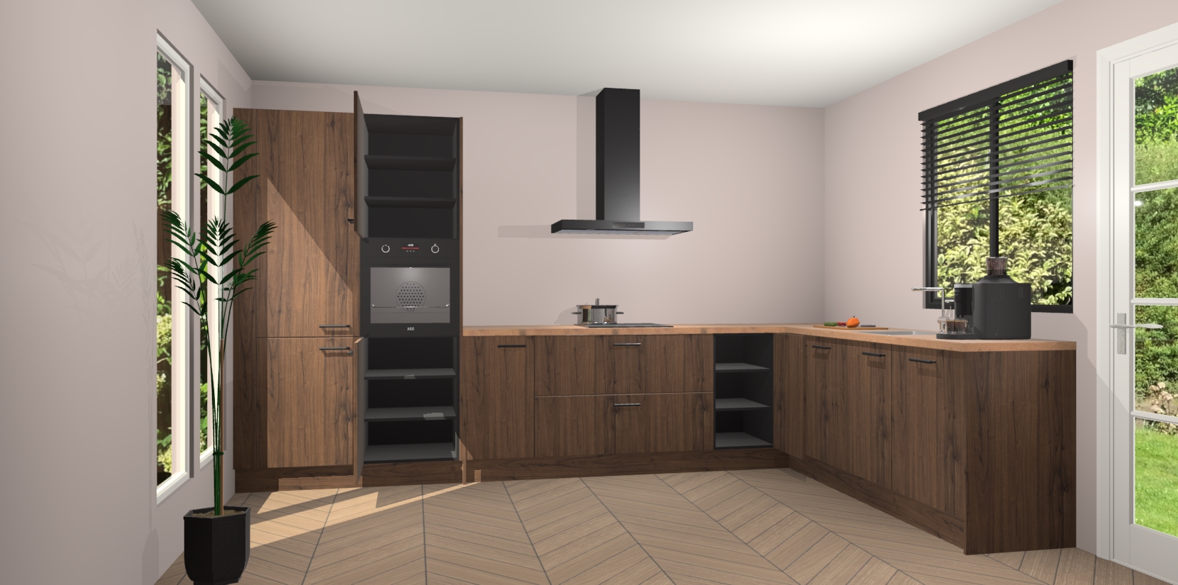 Met een modern, tijdloos design en ruime opslagruimte, zult u zich in no-time thuis voelen in uw nieuwe keuken. Uw leven wordt eenvoudiger met de soft-close deuren die voor het ultieme stille comfort zorgen - geen geluid dat u stoort terwijl u kookt. Ook is de keuken voorzien van 5 ingebouwde apparaten: een oven, inductie kookplaat, afzuigkap, vaatwasser en koelkast. Deze kunnen gemakkelijk na bestelling worden bijgewerkt naar AEG - waardoor uw luxe ervaring compleet is.