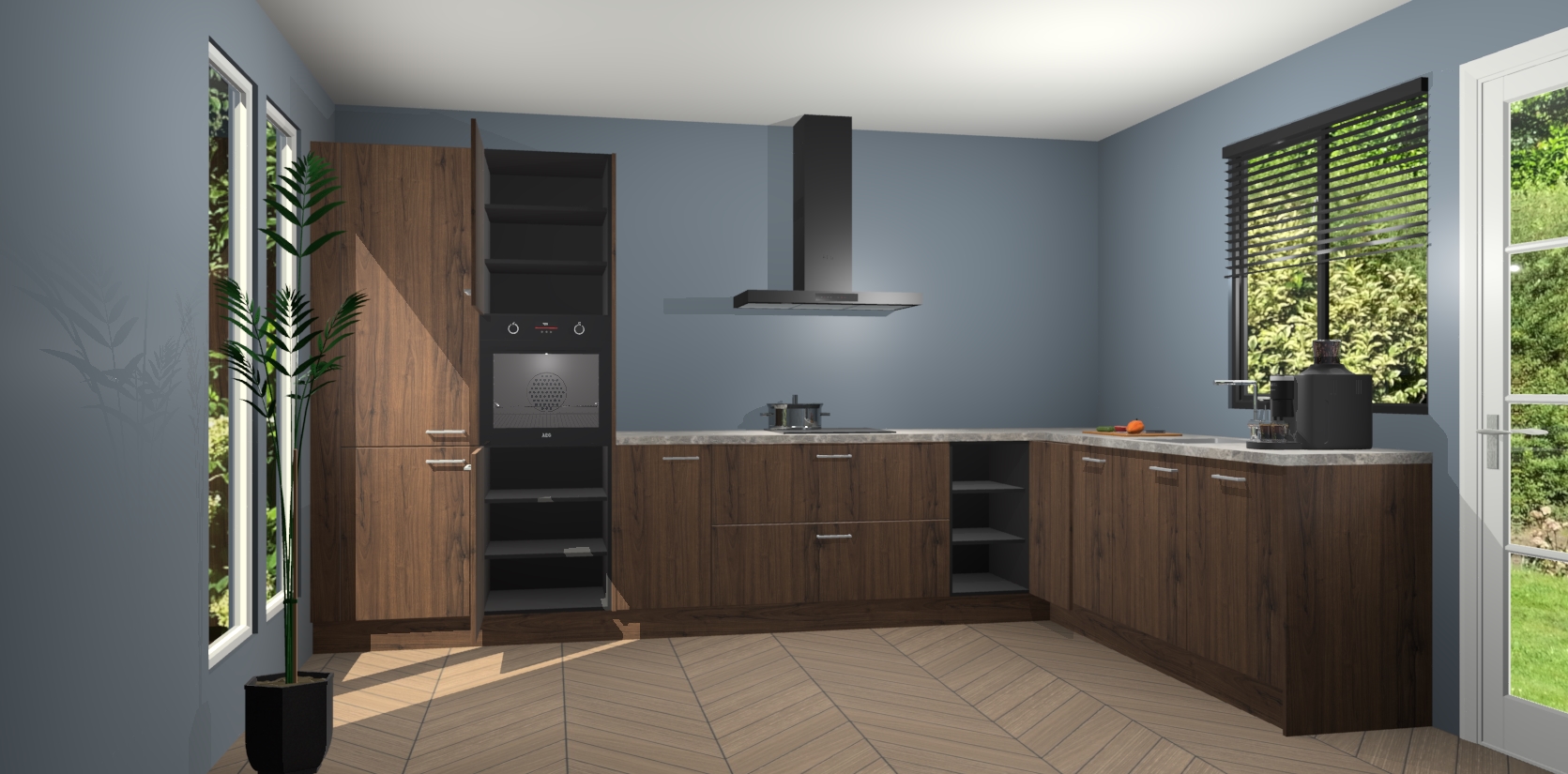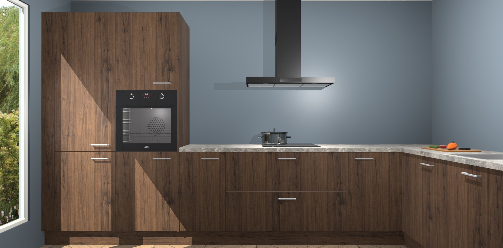 Met een modern, tijdloos design en ruime opslagruimte, zult u zich in no-time thuis voelen in uw nieuwe keuken. Uw leven wordt eenvoudiger met de soft-close deuren die voor het ultieme stille comfort zorgen - geen geluid dat u stoort terwijl u kookt. Ook is de keuken voorzien van 5 ingebouwde apparaten: een oven, inductie kookplaat, afzuigkap, vaatwasser en koelkast. Deze kunnen gemakkelijk na bestelling worden bijgewerkt naar AEG - waardoor uw luxe ervaring compleet is.
