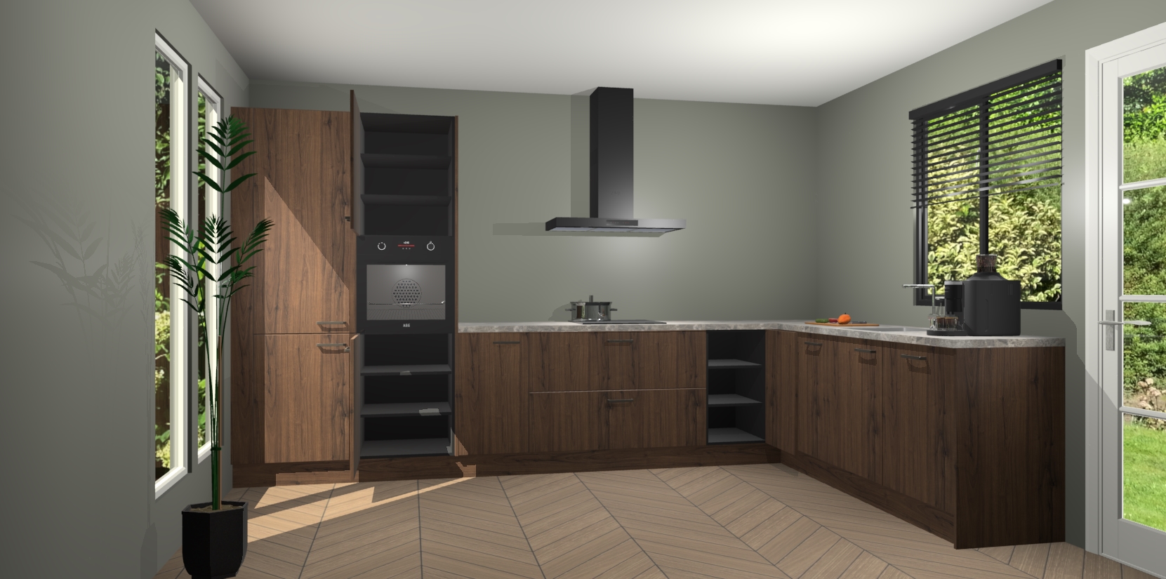 Met een modern, tijdloos design en ruime opslagruimte, zult u zich in no-time thuis voelen in uw nieuwe keuken. Uw leven wordt eenvoudiger met de soft-close deuren die voor het ultieme stille comfort zorgen - geen geluid dat u stoort terwijl u kookt. Ook is de keuken voorzien van 5 ingebouwde apparaten: een oven, inductie kookplaat, afzuigkap, vaatwasser en koelkast. Deze kunnen gemakkelijk na bestelling worden bijgewerkt naar AEG - waardoor uw luxe ervaring compleet is.