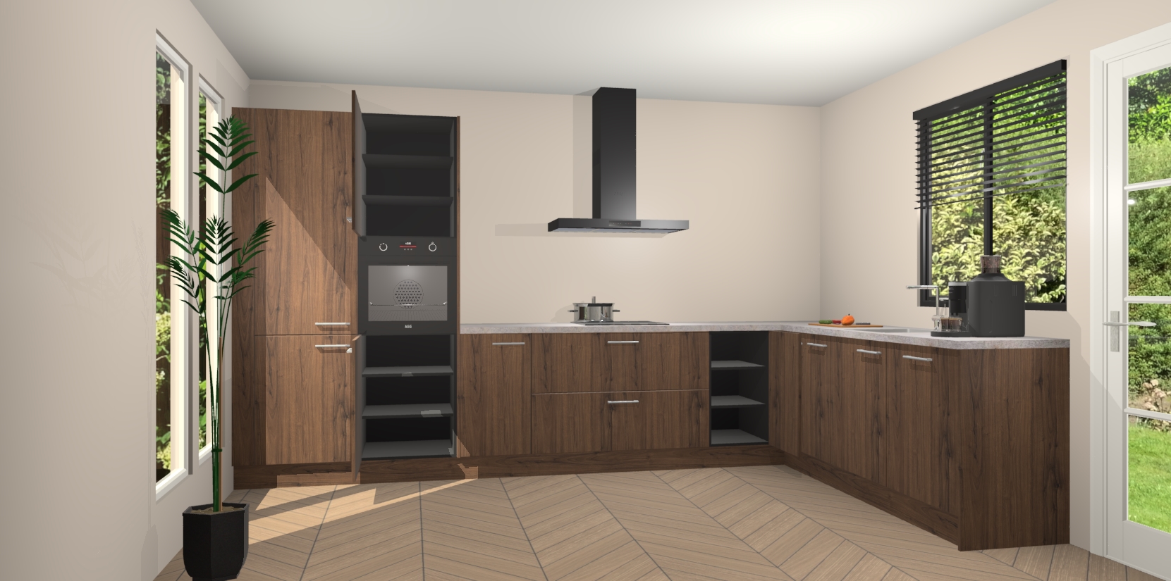 Met een modern, tijdloos design en ruime opslagruimte, zult u zich in no-time thuis voelen in uw nieuwe keuken. Uw leven wordt eenvoudiger met de soft-close deuren die voor het ultieme stille comfort zorgen - geen geluid dat u stoort terwijl u kookt. Ook is de keuken voorzien van 5 ingebouwde apparaten: een oven, inductie kookplaat, afzuigkap, vaatwasser en koelkast. Deze kunnen gemakkelijk na bestelling worden bijgewerkt naar AEG - waardoor uw luxe ervaring compleet is.