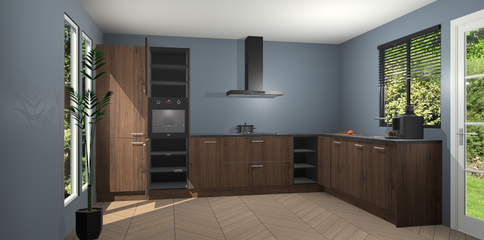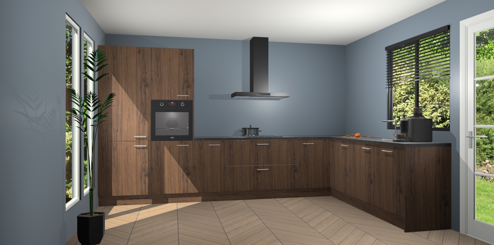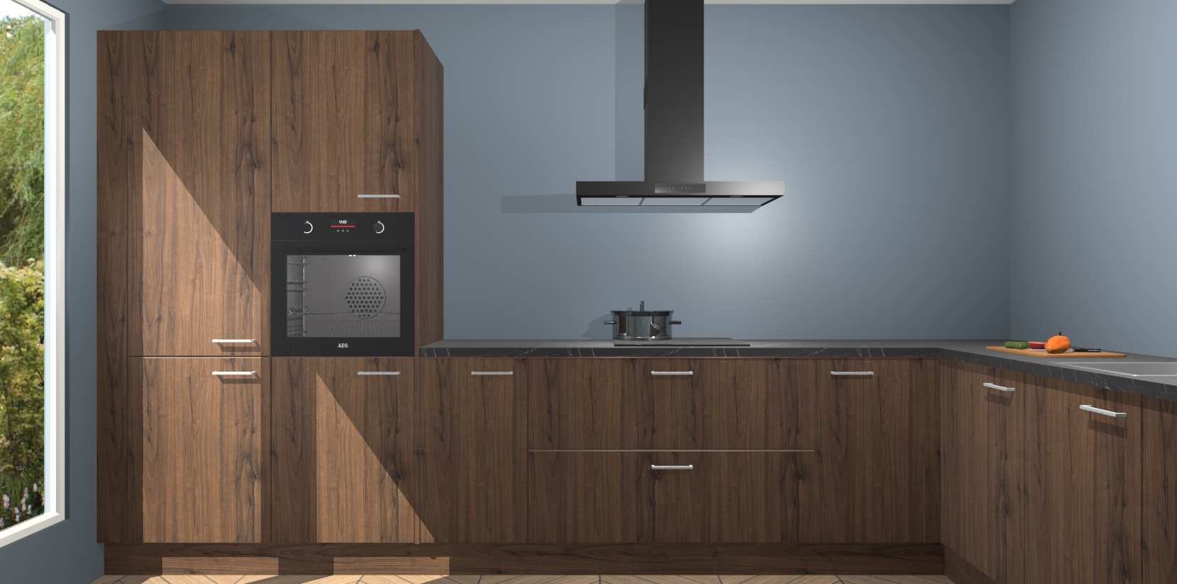 Met een modern, tijdloos design en ruime opslagruimte, zult u zich in no-time thuis voelen in uw nieuwe keuken. Uw leven wordt eenvoudiger met de soft-close deuren die voor het ultieme stille comfort zorgen - geen geluid dat u stoort terwijl u kookt. Ook is de keuken voorzien van 5 ingebouwde apparaten: een oven, inductie kookplaat, afzuigkap, vaatwasser en koelkast. Deze kunnen gemakkelijk na bestelling worden bijgewerkt naar AEG - waardoor uw luxe ervaring compleet is.